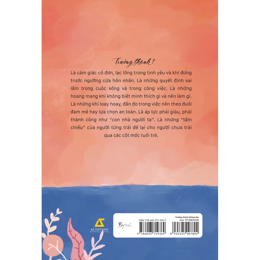“Chẳng có ước mơ nào không đẹp, chẳng có trưởng thành nào không đau” Trưởng thành là cảm giác như thế nào? Là cảm giác cô đơn, lạc lõng trong tình yêu và khi đứng trước ngưỡng cửa hôn nhân. Là những quyết định sai lầm trong cuộc sống và trong công việc. Là những hoang mang khi không biết mình thích gì và nên làm gì. Là những khi loay hoay, đắn đo trong việc nên theo đuổi đam mê hay lựa chọn an toàn. Là áp lực phải giàu, phải thành công như “con nhà người ta”. Là những “tấm chiếu” của người từng trải để lại cho người chưa trải qua các cột mốc tuổi trẻ. Và dù muốn hay không tất cả những đứa trẻ ngoài kia rồi cũng sẽ phải học cách trưởng thành, kể cả bạn và tôi. “Trưởng thành không đau” là cuốn tản văn của Khoa, một 9x đời đầu ở Sài Gòn. Tác giả đã mất tới 6 năm để hoàn thành cuốn sách này. Nó gói gọn tất cả những trải nghiệm trong hành trình trưởng thành của anh để dành tặng cho những người trẻ tuổi vẫn đang loay hoay trong một dòng xoáy mang tên “trưởng thành khuôn mẫu”. Cuốn sách bao gồm 3 chương: Tuổi trẻ - trưởng thành - Thương. Qua mỗi chương, bạn sẽ thấy những suy nghĩ, áp lực, trăn trở và những cung bậc cảm xúc vui - buồn - hụt hẫng - hạnh phúc - bình yên mà bất cứ ai cũng sẽ trải qua một vài lần trong đời tử năm 17 đến năm 30 tuổi. Và đặc biệt là sự thay đổi về nhân sinh quan, góc nhìn về nhiều khía cạnh trong đời sống ở giai đoạn trước 25 và sau 25 trong cùng một vấn đề. Sẽ như thế nào khi một người trẻ tuổi bước chân vào thế giới của người trưởng thành? Hy vọng cuốn sách sẽ giống như một người bạn đồng hành và san sẻ cùng bạn những nỗi đau khó nói, hoặc cũng có thể giúp đỡ bạn bước ra khỏi những tổn thương vụn vỡ, tìm cho mình một con đường trưởng thành “ít đau” nhất.