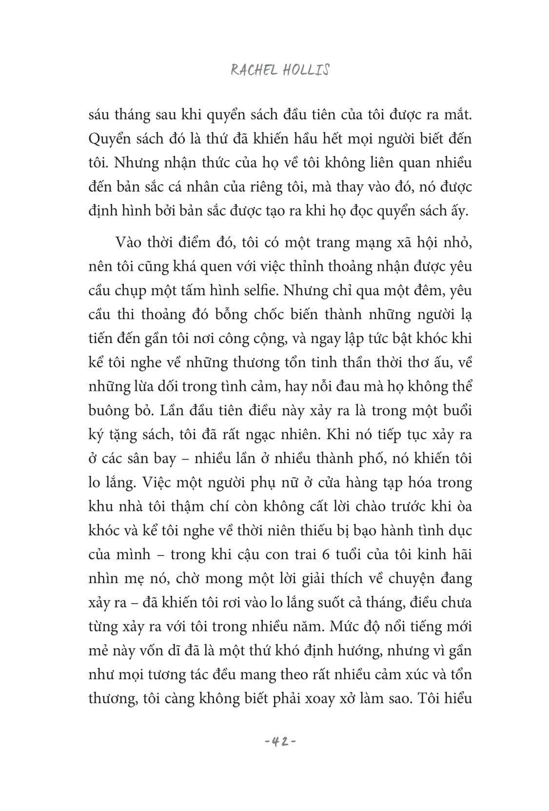 Quyển sách “Trưởng thành sau biến cố” không nhằm mục đích kể lại sự đau khổ, tuyệt vọng hay ấm ức về một điều gì đó, mà nó kể lại hành trình đầy những biến cố mà chính tác giả trải qua đã diễn ra như thế nào và phân tích lý do tại sao biến cố lại xảy ra, cũng như cách mà tác giả Rachel Hollis đối diện và vượt qua chúng.