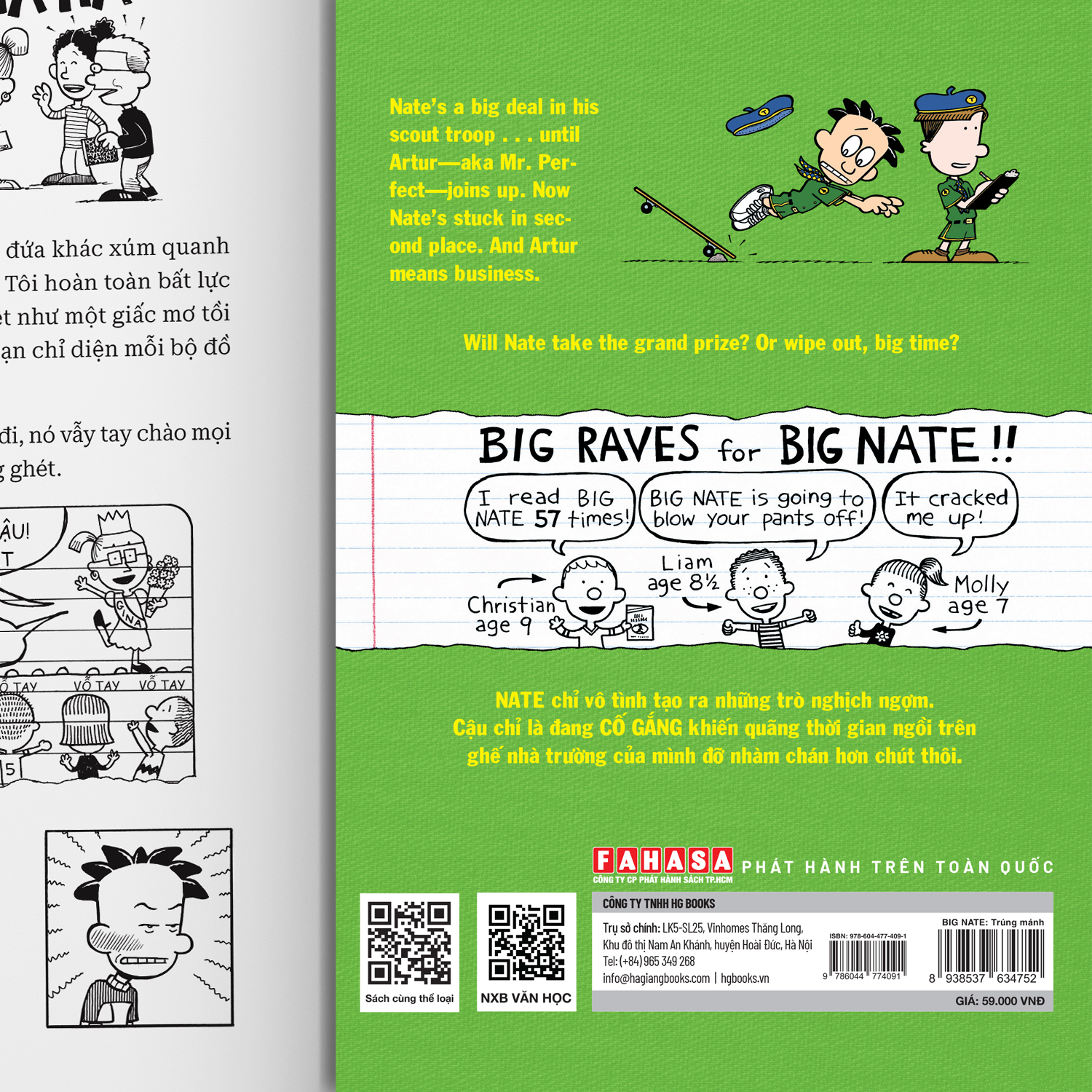 BIG NATE là bộ truyện tranh của nhà văn Mỹ Lincoln Peirce xoay quanh cậu bé Nate Wright, từ chuyện gia đình, bạn bè đến trường lớp cùng ti tỉ những rắc rối hài hước của cậu. Nếu ai đã từng say mê “Nhật ký chú bé nhút nhát” của Jeff Kinney thì không thể bỏ qua bộ truyện “mặn mòi” này với những hình vẽ ngộ nghĩnh cùng lời văn hóm hỉnh hết nước chấm đã làm nên tên tuổi của một Nate “Quậy” chính hiệu.