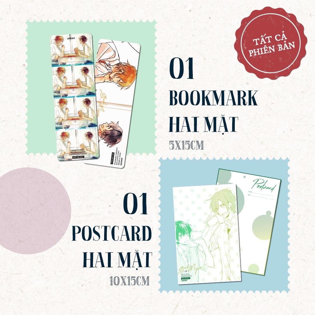 Bản giới hạn: 1 Bookmark, 1 Postcard Ivory bồi đôi, 01 lót ly 2 mặt ,1 photo strip PVC, giá đỡ điện thoại acrylic (KT 7.2x14cm), 1 poster A3, tem chính hãng độc quyền Kadokawa. Giá bìa: 169.000đ