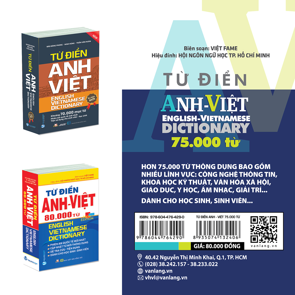 Từ điển Anh Việt 75000 mục từ và định nghĩa (tái bản 2019) Nhằm đáp ứng nhu cầu học tiếng Anh đa dạng của nhiều người. Nhóm chúng tôi đã biên soạn cuốn từ điển