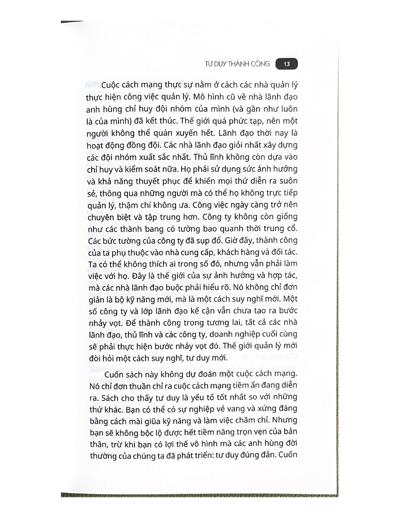 Tư duy thành công cung cấp bộ công cụ đầy đủ và được cấu trúc rõ ràng, nhằm giúp các nhà quản lý khai phá hết tiềm năng của bản thân.
