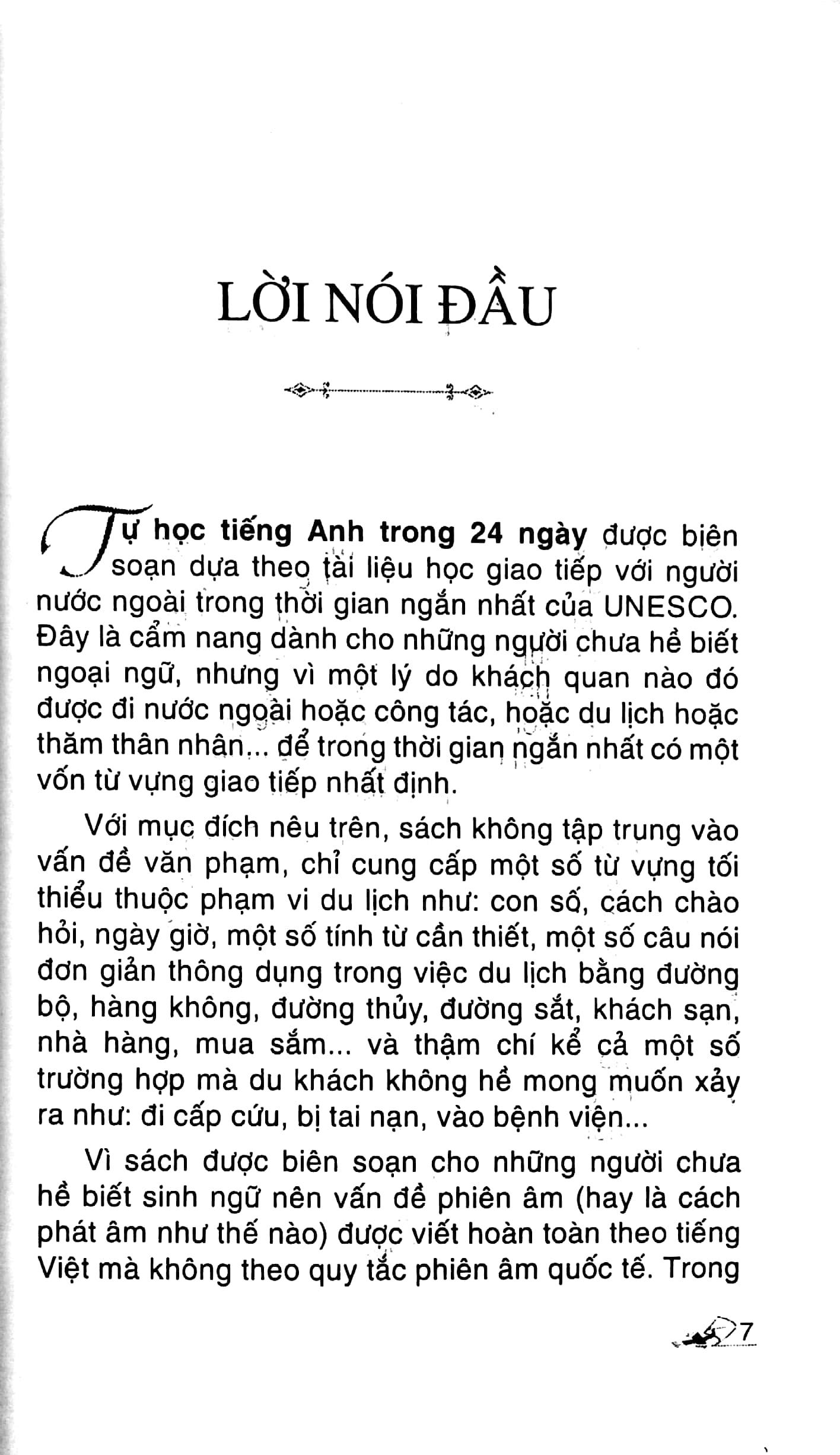 Từ vựng thông dụng Mẫu câu đơn giản Phiên âm dễ đọc Sau 24 ngày, bạn có thể giao tiếp với người nước ngoài. Chúc các bạn thành công!