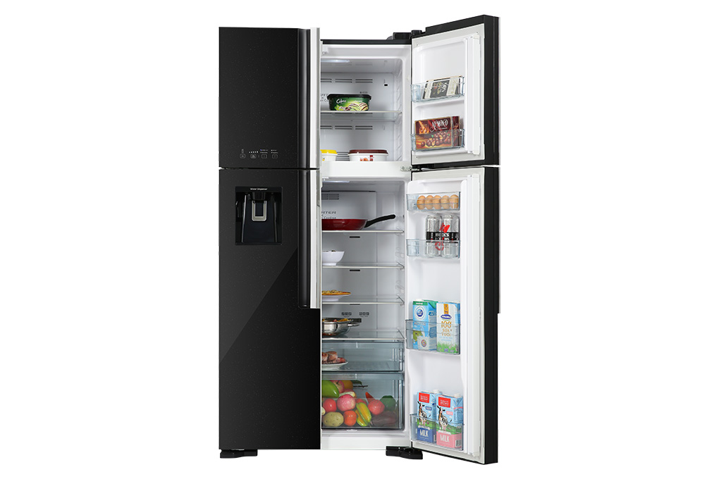 • Hitachi Inverter 540 lít R-FW690PGV7X GBK là tủ lạnh Multi Door 4 cánh phong cách Pháp sang trọng, cửa tủ mặt kính sáng bóng gam màu đen hiện đại, dễ dàng lau chùi giữ bề mặt luôn như mới, 4 cánh độc lập dễ sử dụng, tận dụng tối ưu không gian lưu trữ và hạn chế khí lạnh thoát ra ngoài.