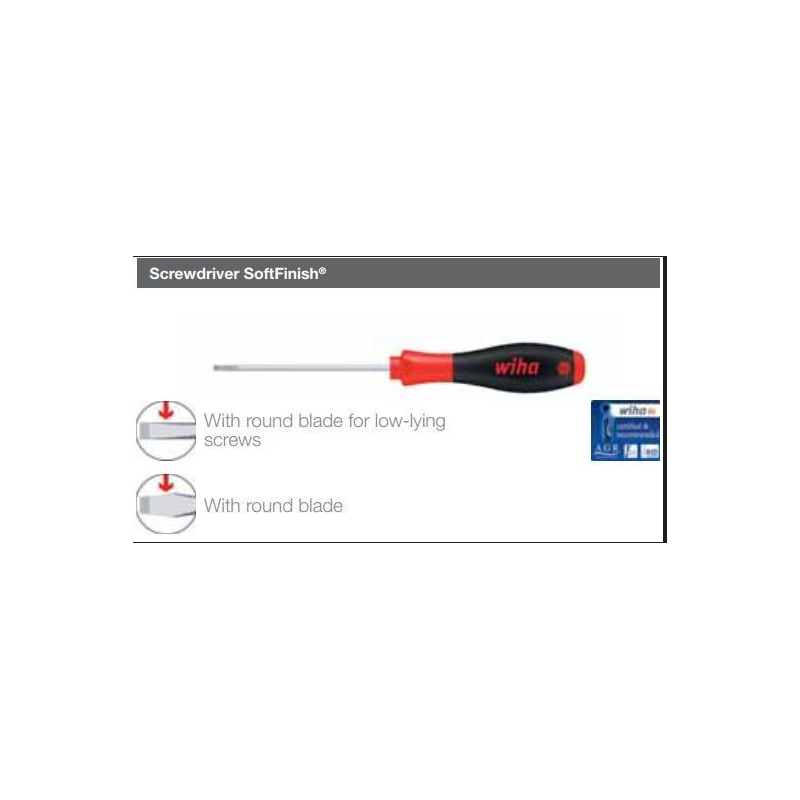 English name: Screwdriver SoftFinish Slotted with round blade for low-lying screws