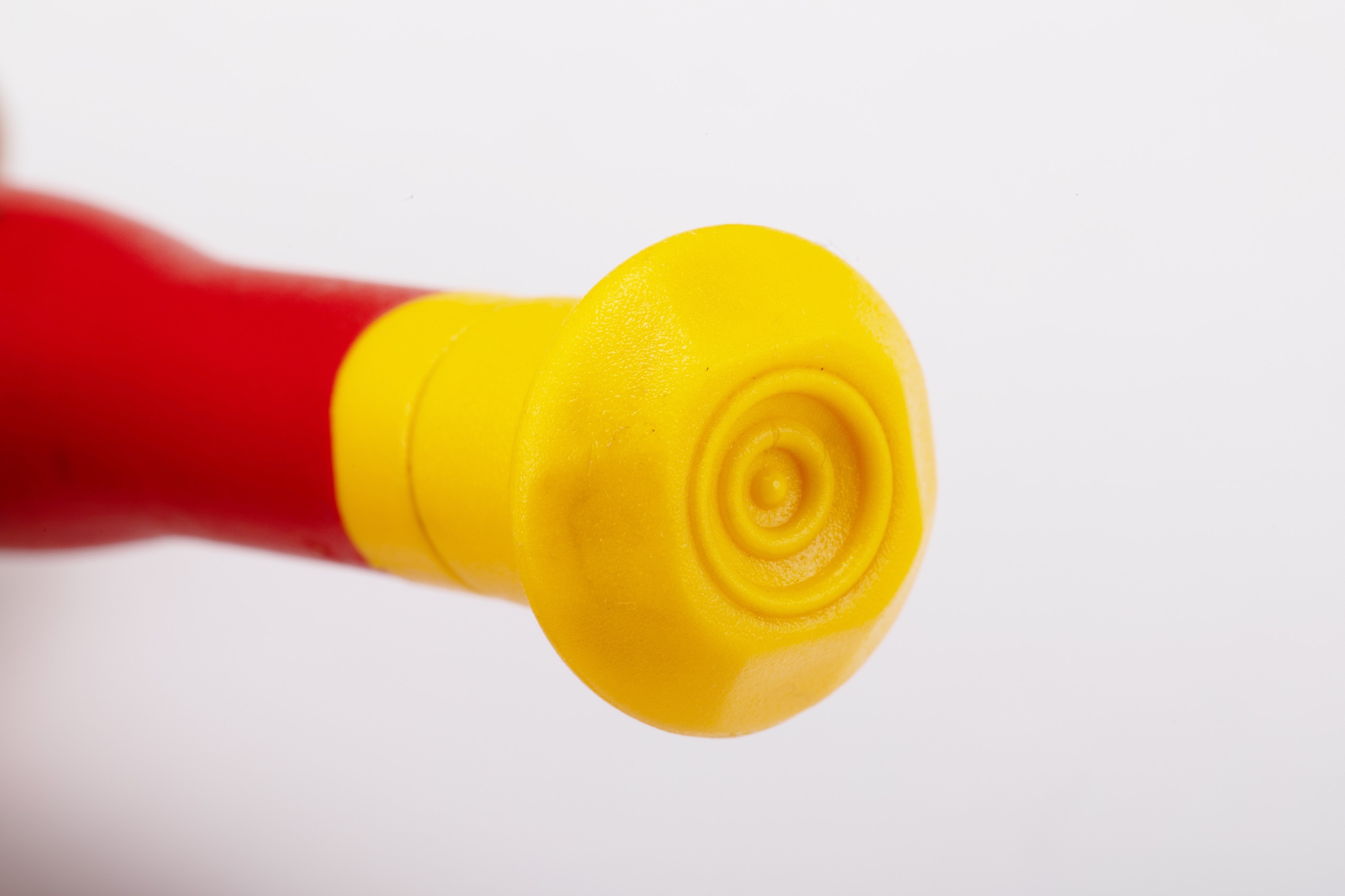 Englisname: Slotted, Phillips hexagonal blade and solid steel cap, 6-pcs. 1x SoftFinish slotted screwdriver with continuous hexagonal blade and solid steel cap 3.5 mm x 75 mm (03223) 1x SoftFinish slotted screwdriver with continuous hexagonal blade