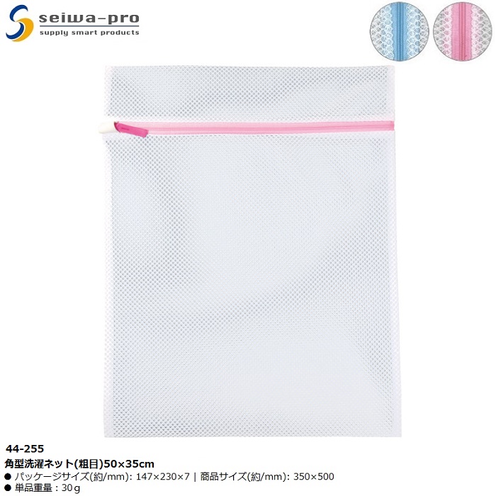 Túi lưới Nhật Bản Seiwa Pro 50×35cm Sản phẩm được nhập khẩu trực tiếp từ Nhật Bản Thương hiệu: Seiwa-Pro Xuất xứ: Nhật Bản Chất liệu/Thành phần: Polyester cao cấp an toàn & bền bỉ, cho thời gian sử dụng lâu dài, đầu khóa bằng thép không gỉ có mép che giúp tránh va đập vào thành lồng giặt trong quá trình giặt Màu sắc: màu hồng/ màu xanh Kích thước: 50 x 35cm Đặc điểm nổi bật: