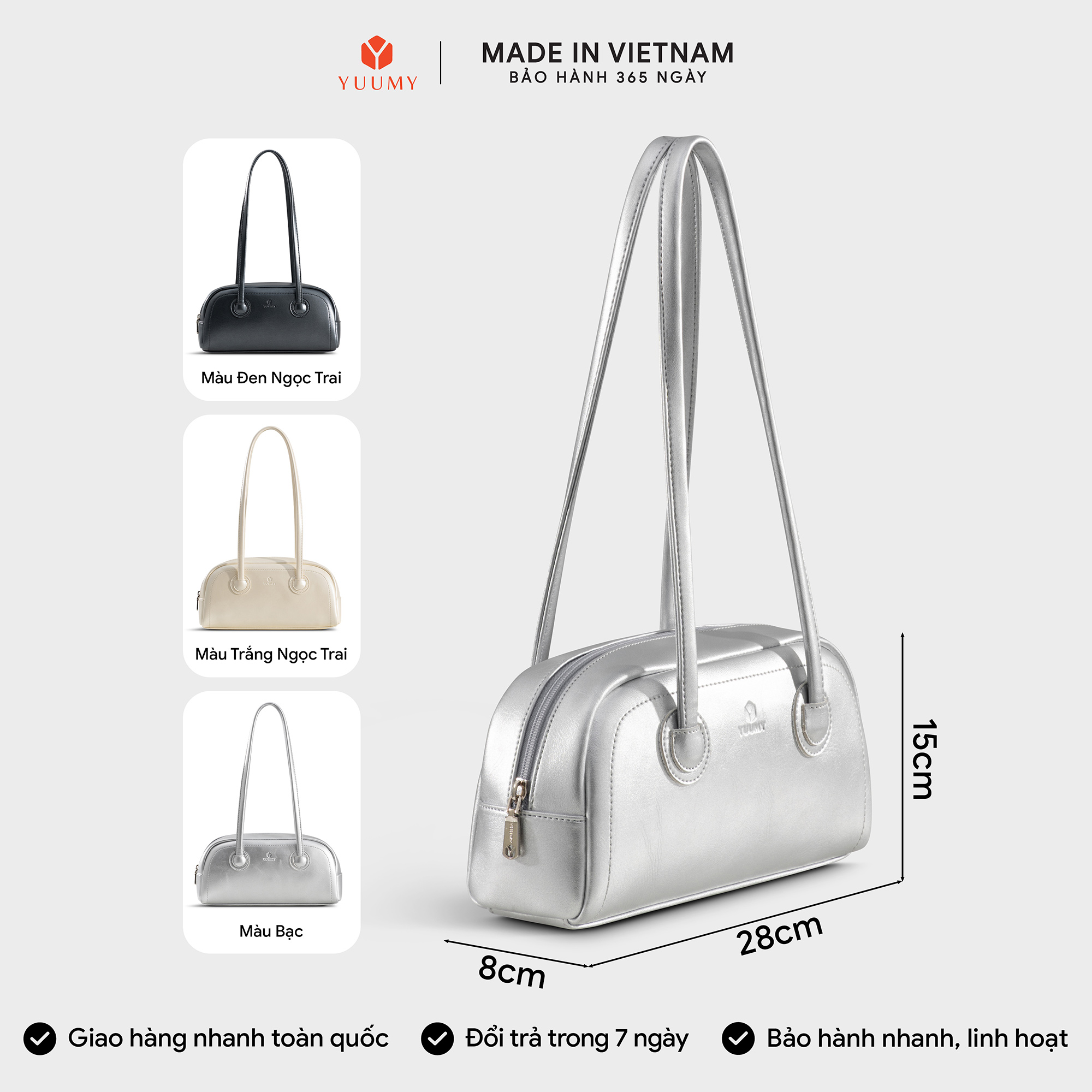 Túi xách đeo vai Yuumy Glossy YN309 dễ dàng đeo vai hoặc xách tay, giữ được sự chỉn chu mà không gây nặng nề. Với kiểu dáng cong mềm mại cùng thiết kế gọn gàng, chiếc túi không chỉ là phụ kiện thời trang – mà còn là điểm nhấn phong cách cho bất kỳ set đồ nào. Chất da tổng hợp cao cấp bề mặt mềm mịn, bóng nhẹ, dễ vệ sinh. Túi YN309 đủ không gian để đựng điện thoại, ví, sổ tay nhỏ, đồ trang điểm nhẹ,... giúp nàng luôn gọn gàng, chỉn chu. THÔNG SỐ KỸ THUẬT: