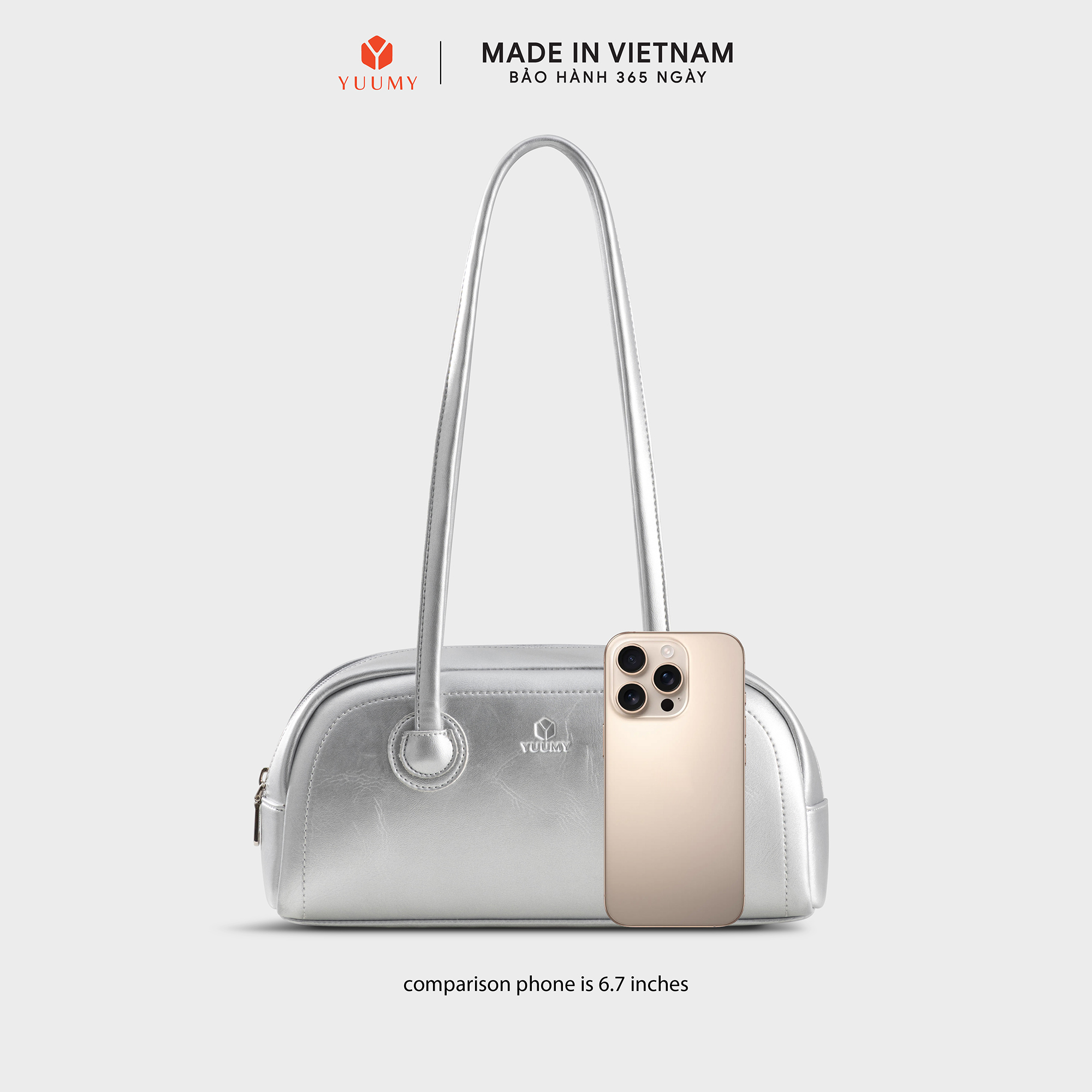 Túi xách đeo vai Yuumy Glossy YN309 dễ dàng đeo vai hoặc xách tay, giữ được sự chỉn chu mà không gây nặng nề. Với kiểu dáng cong mềm mại cùng thiết kế gọn gàng,