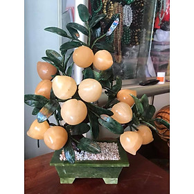 Chất liệu: Quả đào bằng đá thạch anh hồng, lá và chậu cây là đá ngọc Ấn Độ Bao gồm: 28 quả Kích thước: Cao 50 cm x Ngang 34 cm Khối lượng: 6 kg