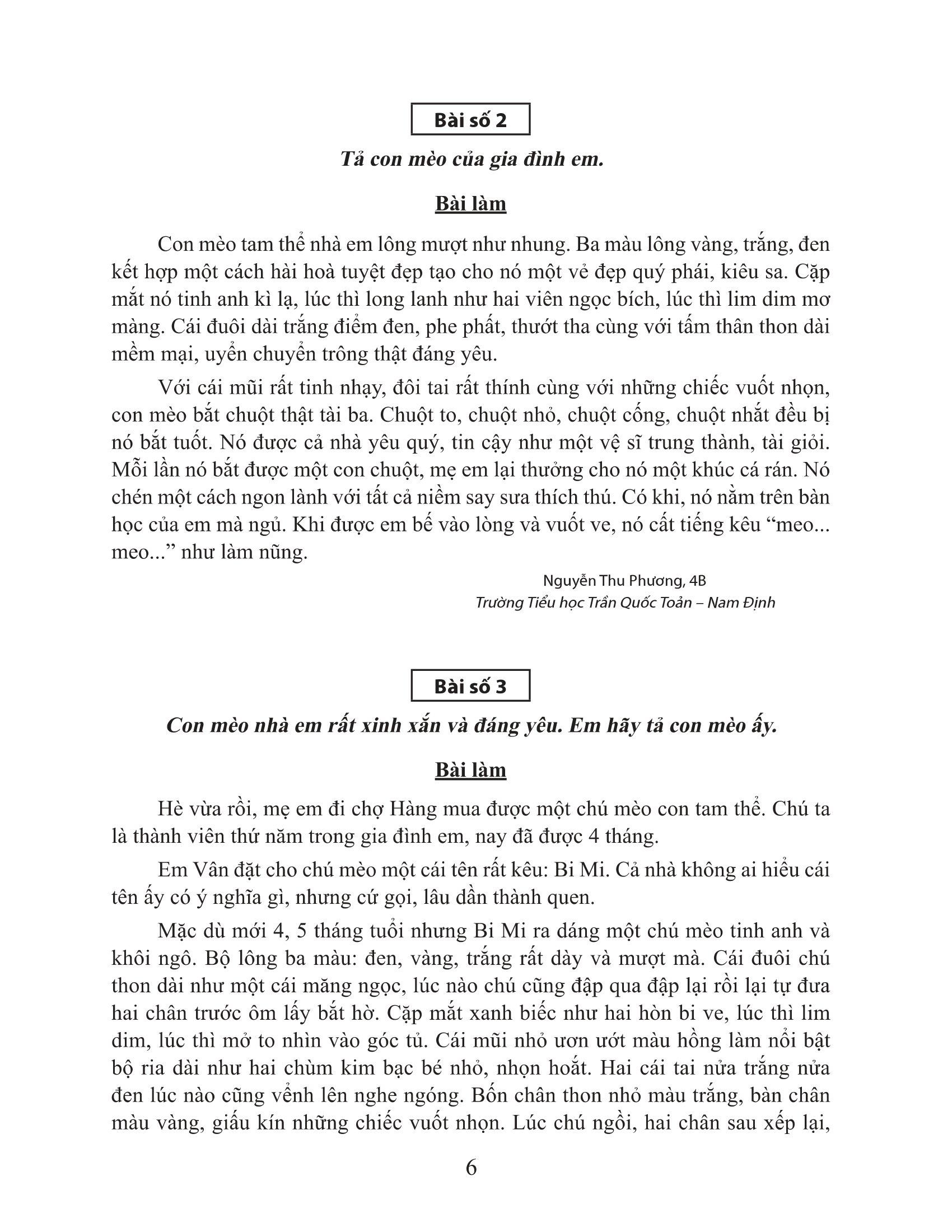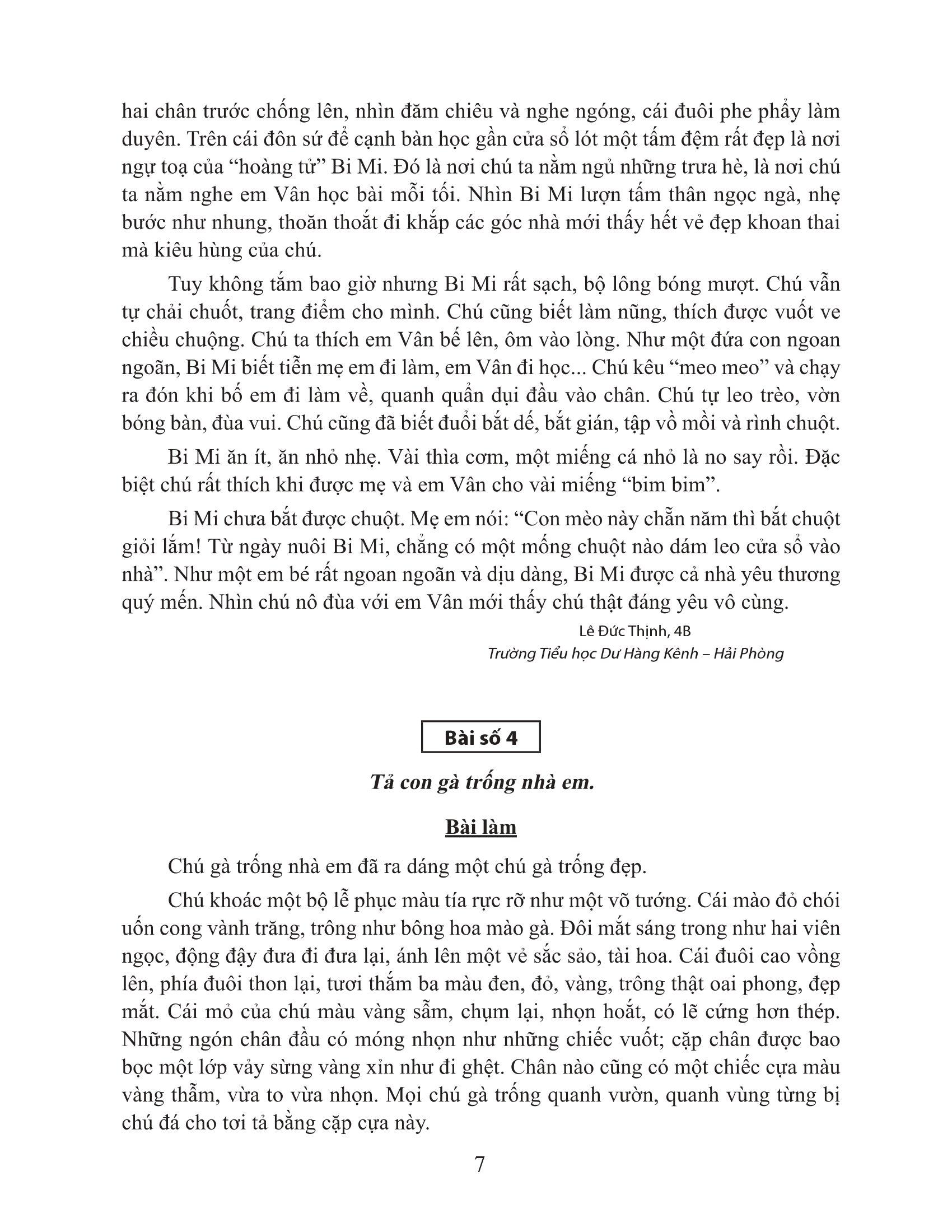 Các bài văn được tuyển chọn ở đây đã đáp ứng những yêu cầu cơ bản được nêu lên.Văn miêu tả và văn kể chuyện là phần trọng tâm của môn Tiếng Việt Tiểu học. Ngoài việc học thầy, học bạn, học ở trên lớp, học tập và quan sát sự vật trong cuộc sống, các em còn cần biết học trong sách và làm theo sách. Đọc những bài văn hay trên sách báo cũng không kém phần quan trọng. Có biết tự đọc, tự học mới thành tài.