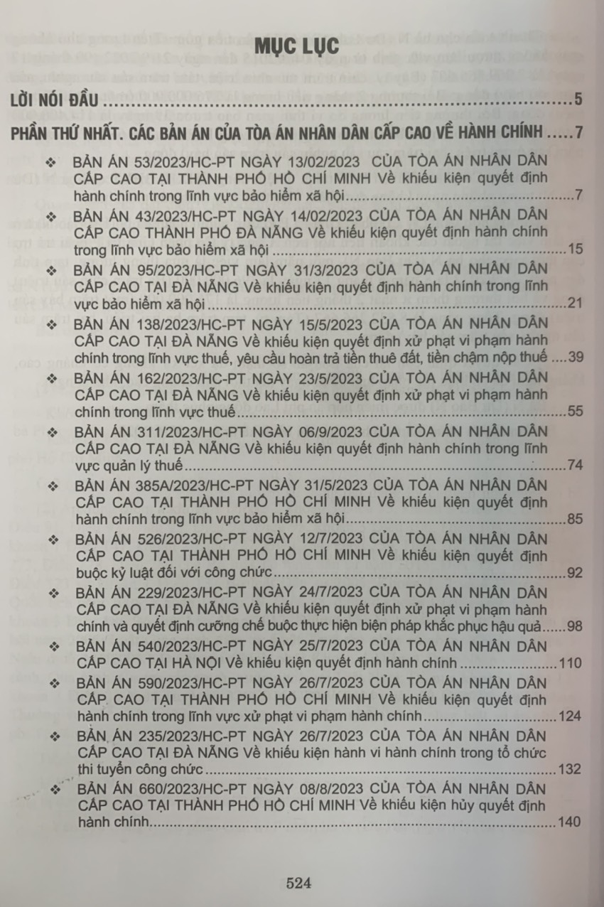 TUYỂN TẬP CÁC BẢN ÁN CỦA TÒA ÁN NHÂN DÂN CẤP CAO VỀ HÀNH CHÍNH – KINH DOANH THƯƠNG MẠI – HÔN NHÂN GIA ĐÌNH – LAO ĐỘNG