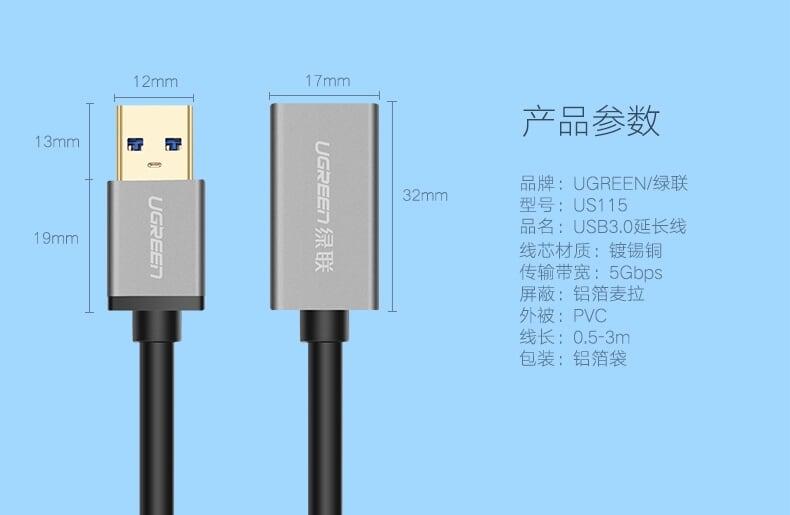 Ugreen 10497 2m usb 3.0 male to female extension cable us115 1. Length : 2M 2. Color : Black 3. USB Version : 3.0 4. Charger + Data Transfer Link Cable USB 3.0 5. 150