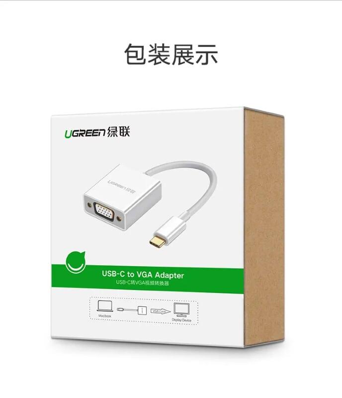 Ugreen 40378 type c to vga dual usb ethernet converter trắng mm135 1. Features: Convert USB-C to VGA Full HD + 2 USB 3.0 ports + 1 Lan 10 / 100Mbps port. 2. Cable length: