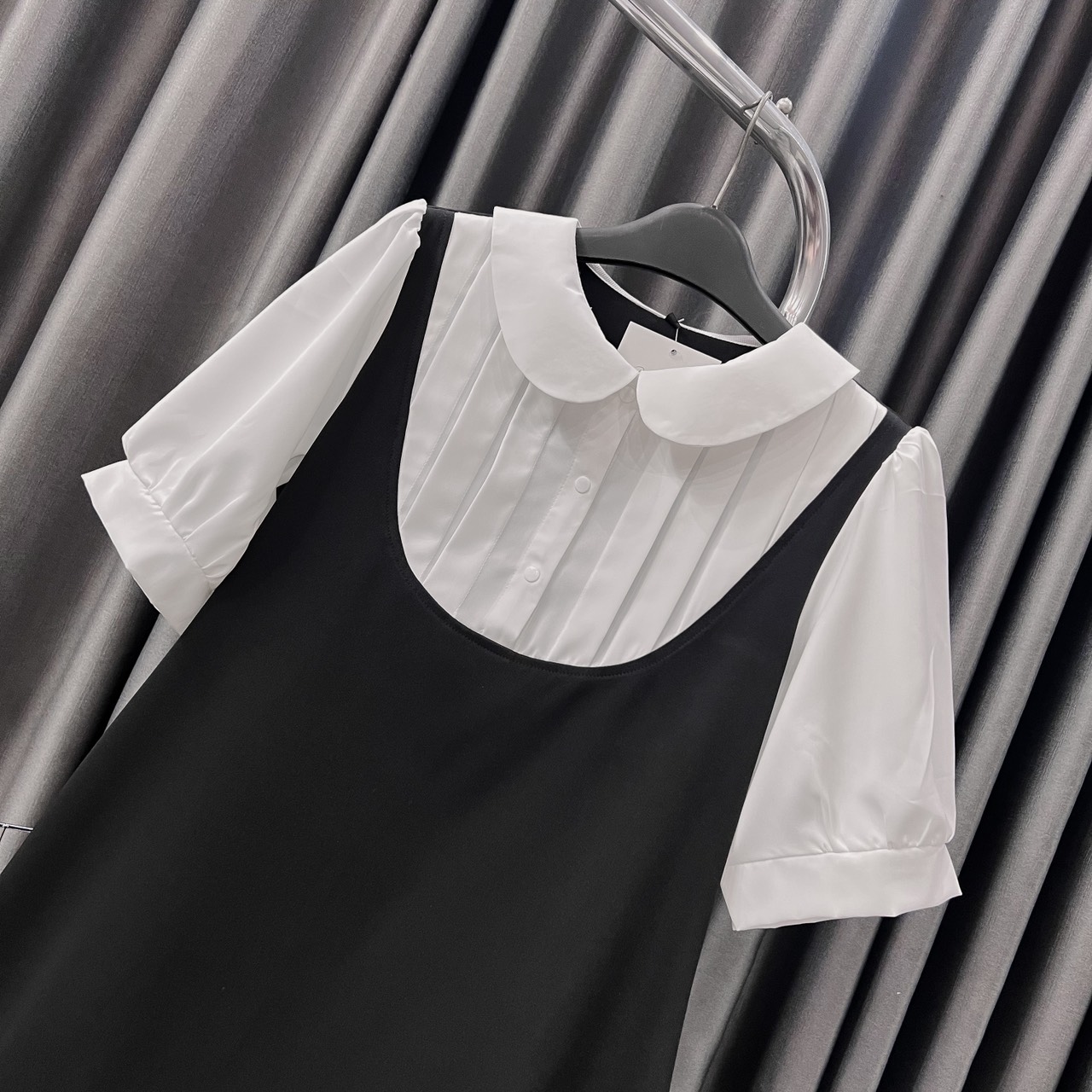 Váy bầu yếm liền thân phối cổ sơ mi đẹp, đầm yếm bầu công sở, MLEE SHOP