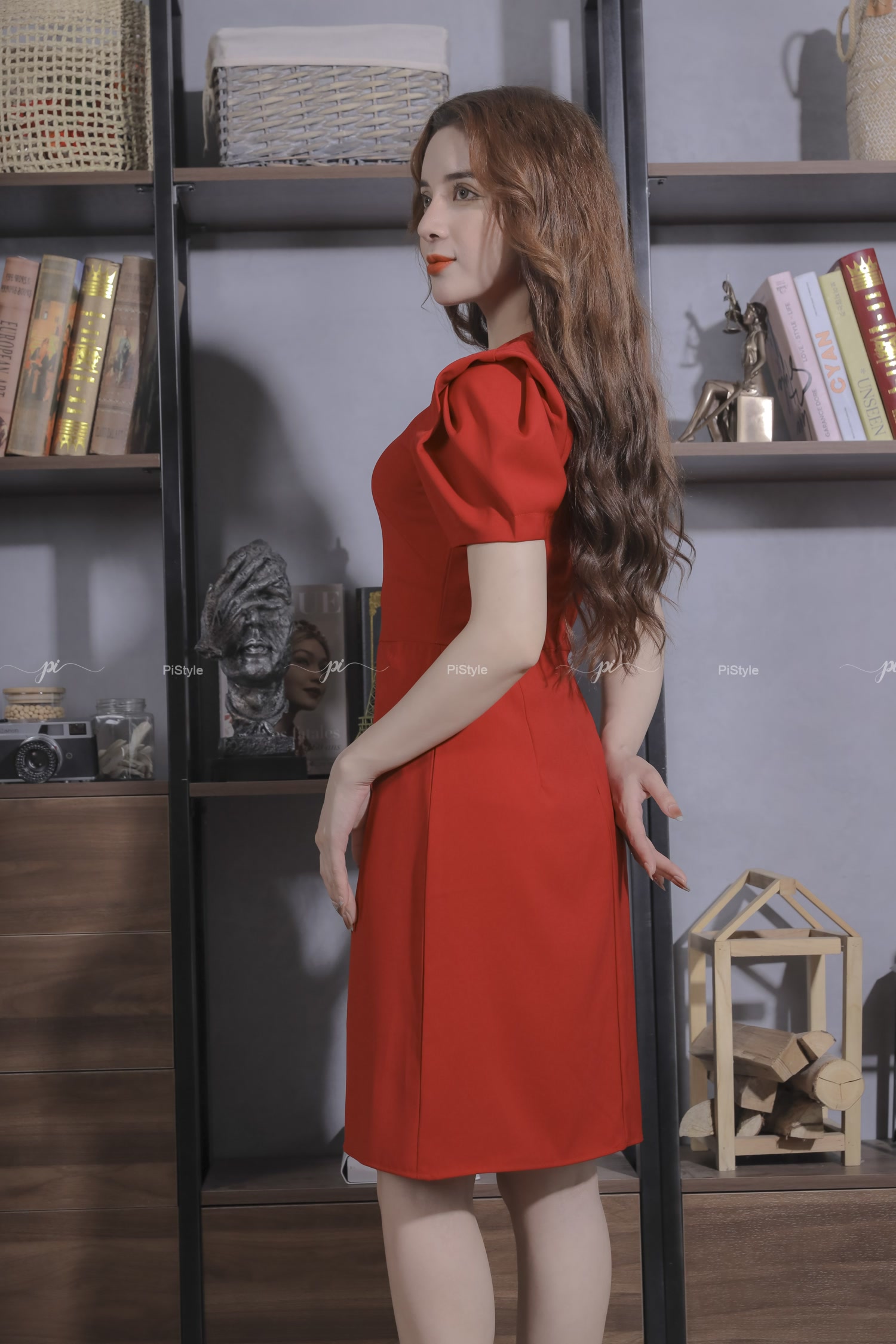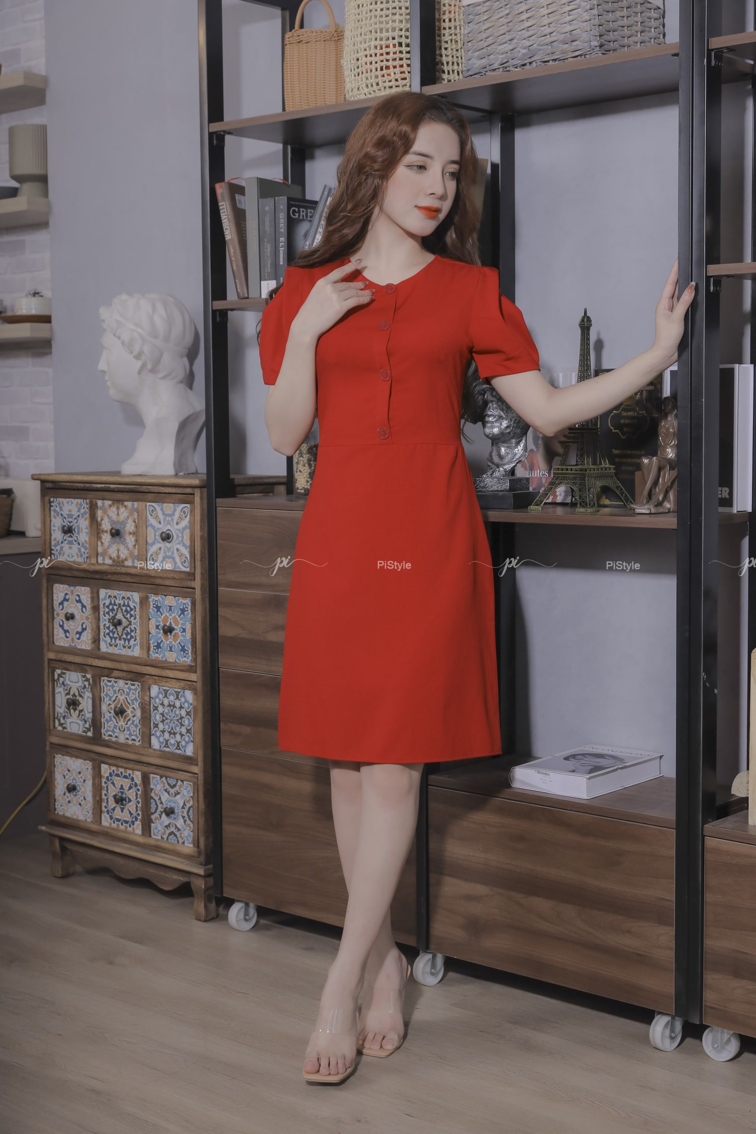 ✨Váy Vải Trơn Cúc Trước Màu Đỏ Cao Cấp 23V059
