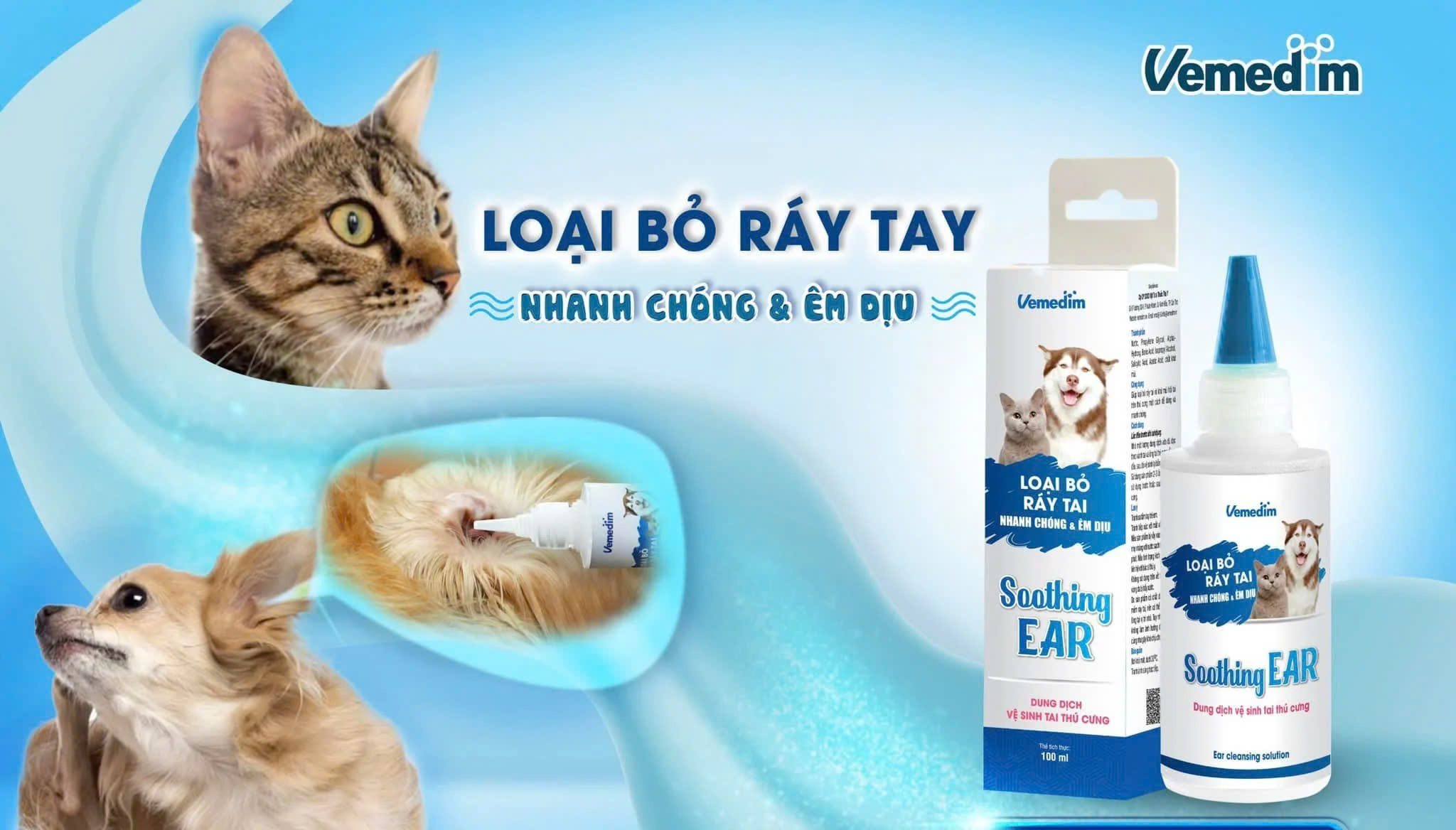 Nhỏ một lượng dung dịch vừa đủ dọc theo vành tai và ống tai thú cưng rồi xoa đều, sau đó vệ sinh lại bằng bông gòn.