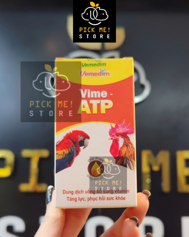 Vemedim Vime ATP Drop Cung Cấp Vitamin Tăng Lực cho Gà Đá, Chim Cảnh, Chó Đua THÀNH PHẦN: Trong 1 mL có chứa: ATP (adenosine triphosphate) 1 mg Vitamin B12 (cyanocobalamin).. 0,5 mg Sodium selenite
