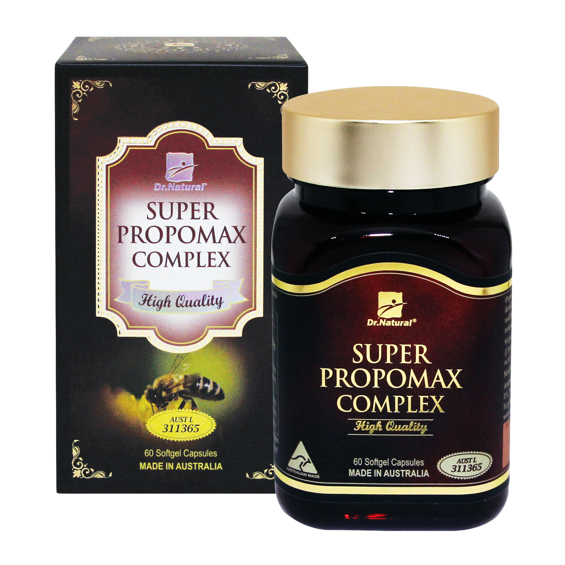 KEO ONG UỐNG DR NATURAL SUPER PROPOMAX COMPLEX 60 VIÊN GIÚP TĂNG CƯỜNG SỨC ĐỀ KHÁNG, PHỤC HỒI SỨC KHỎE NHANH CHÓNG Keo ong DR NATURAL SUPER PROPOMAX COMPLEX là một sản phẩm chất lượng của tập đoàn dược phẩm Astragrace (Úc). Astragrace nổi tiếng với những sản phẩm thực sự chất lượng và mẫu mã sang trọng. Tất cả sản phẩm của Astragrace được sản xuất tại nhà máy đạt chuẩn GMP và phù hợp với bộ tiêu chuẩn của cục Quản Lý Dược Úc (TGA). THÀNH PHẦN mỗi viên nang mềm có chứa: