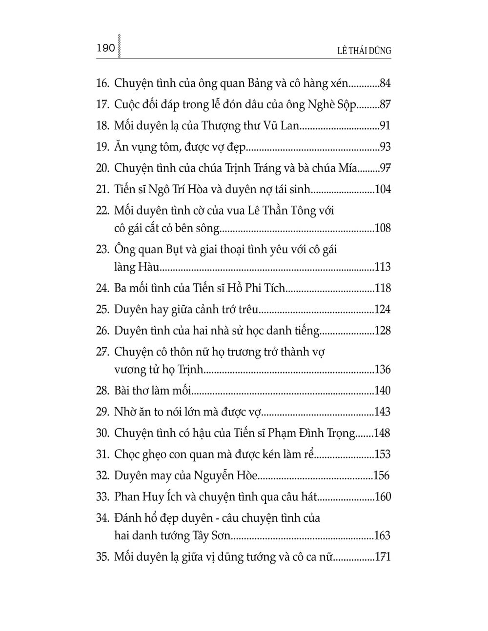 Duyên cầm sắt vững bền theo năm tháng, Nghĩa tào khang thắm thiết đến muôn đời. Mỗi câu chuyện tình đều chứa đựng một giá trị nhân văn sâu sắc, nó là bài học đối nhân xử thế, có tác dụng giáo dục về quan niệm đúng đắn trong tình yêu. Hy vọng cuốn sách này sẽ giúp bạn đọc có thêm được những thông tin hấp dẫn, bất ngờ về đời tư, tình cảm của một số nhân vật nổi tiếng trong lịch sử Việt Nam.