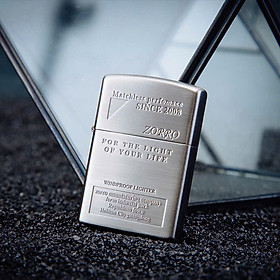 Bật lửa Zorro dùng xăng + đá (flint) Vỏ kim loại, phong cách retro, bền & dễ sửa Bật lửa Zorro dùng xăng (xăng bật lửa/chất lỏng nhẹ) kết hợp đá lửa (flint) — thiết
