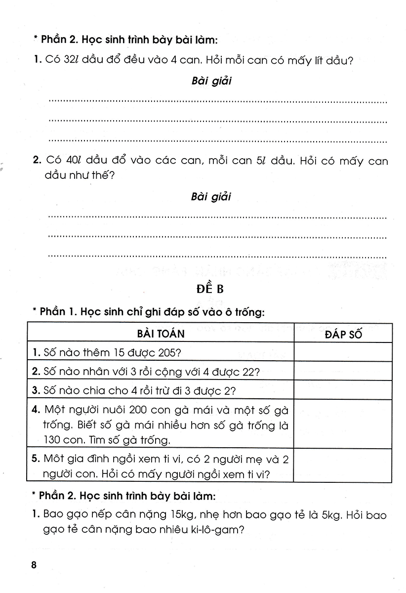 Combo Bài Tập Tuần và Đề Kiểm Tra Toán, Tiếng Việt Lớp 3 (Tùy chọn theo Chương trình SGK mới) Lưu ý: Chọn đúng chương trình học vả kỳ học ở các 2 mục tùy