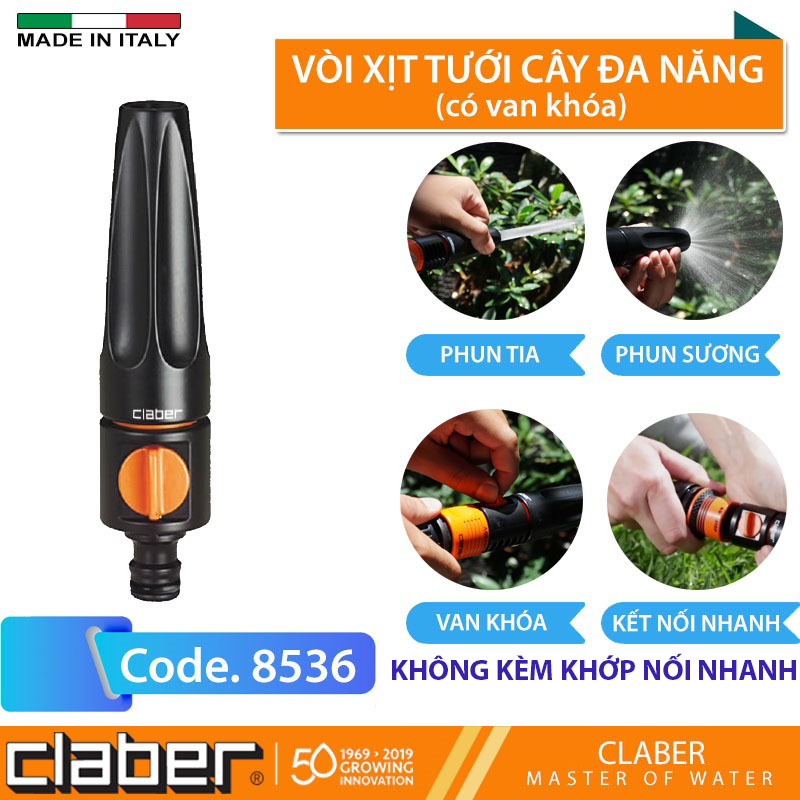 ✨Vòi Xịt Tưới Cây Đa Năng Claber 8536, có van khóa, điều chỉnh được 2 chế độ, nhựa ABS, kết nối nhanh, không kèm phụ kiện