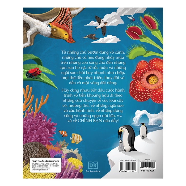 Từ những chú bướm đang vỗ cánh, những chú cá heo đang nhảy múa trên những con sóng cho đến những rạn san hô rực rỡ sắc màu và những ngôi sao chổi bay nhanh như chớp, mọi thứ đều phát triển, thay đổi và đều có một vòng đời riêng. Hãy cùng nhau bắt đầu cuộc hành trình vô tiền khoáng hậu đi theo những câu chuyện về các loài cây cỏ, muông thú, về những ngôi sao và các hành tinh, về những dòng sông và những ngọn núi lửa, và về chính bạn nữa đấy!