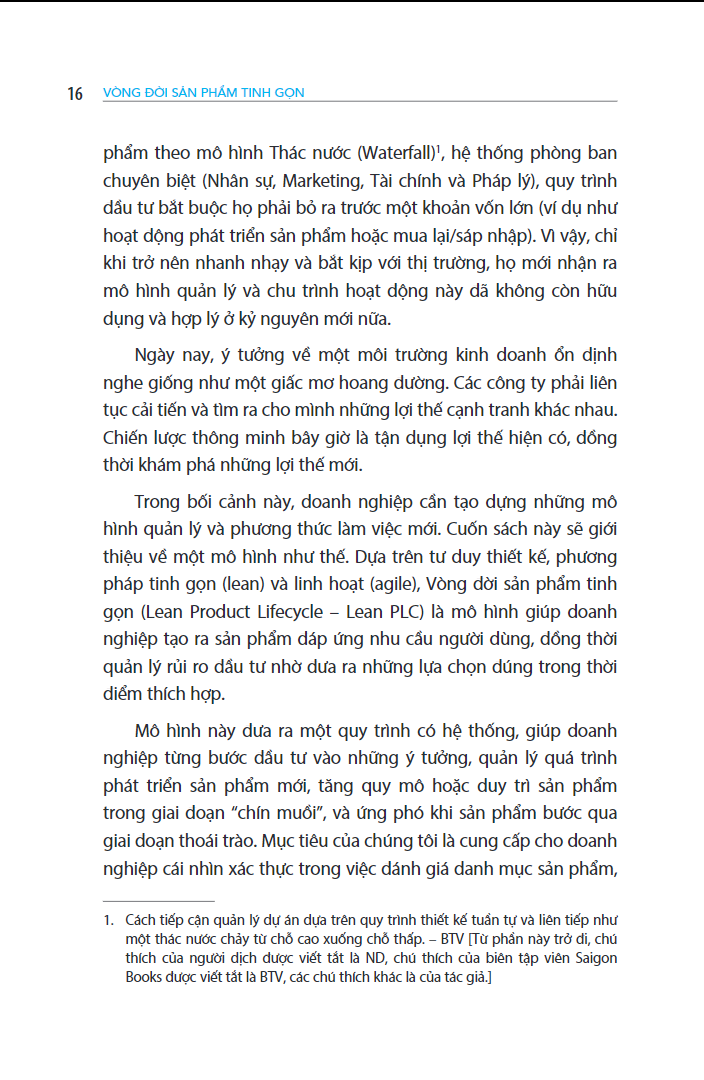 Trong bối cảnh thế giới đang thay đổi từng ngày, mỗi công ty phải có khả năng đổi mới sáng tạo và duy trì tăng trưởng để giữ vững lợi thế cạnh tranh. Vòng đời sản phẩm tinh gọn là cuốn sách dành cho những “kẻ thay đổi cuộc chơi” – những người muốn kiến tạo hành trình đổi mới và tăng trưởng bền vững. Những kẻ thay đổi cuộc chơi này có thể là bất kỳ ai: công nhân, giám đốc sản phẩm (product manager), chủ sở hữu sản phẩm (product owner), nhà thiết kế, kỹ sư phần mềm, giám đốc đổi mới, giám đốc công nghệ số, giám đốc marketing và kinh doanh, giám đốc tài chính, quản lý cấp cao và những người nằm trong ban điều hành.
