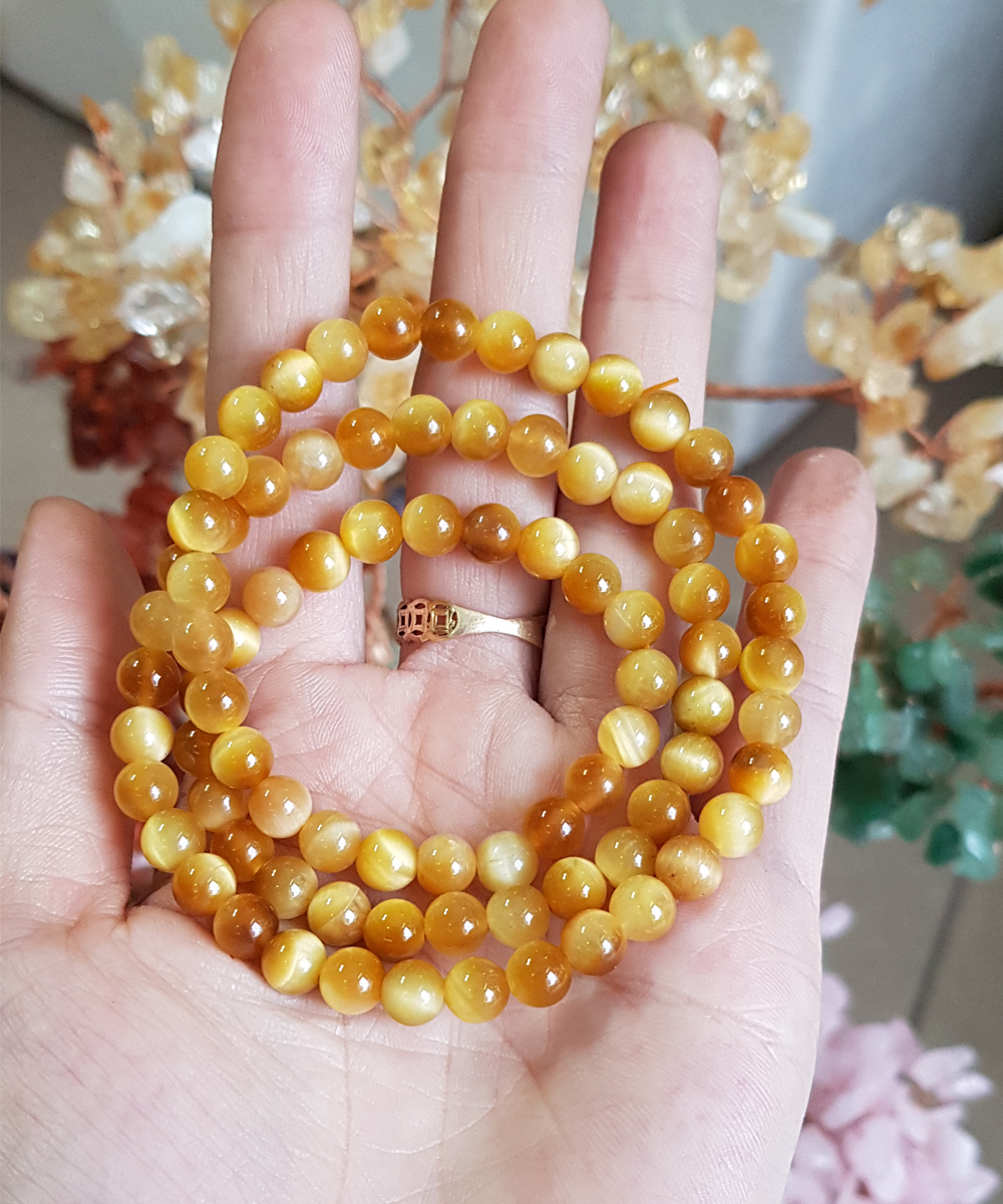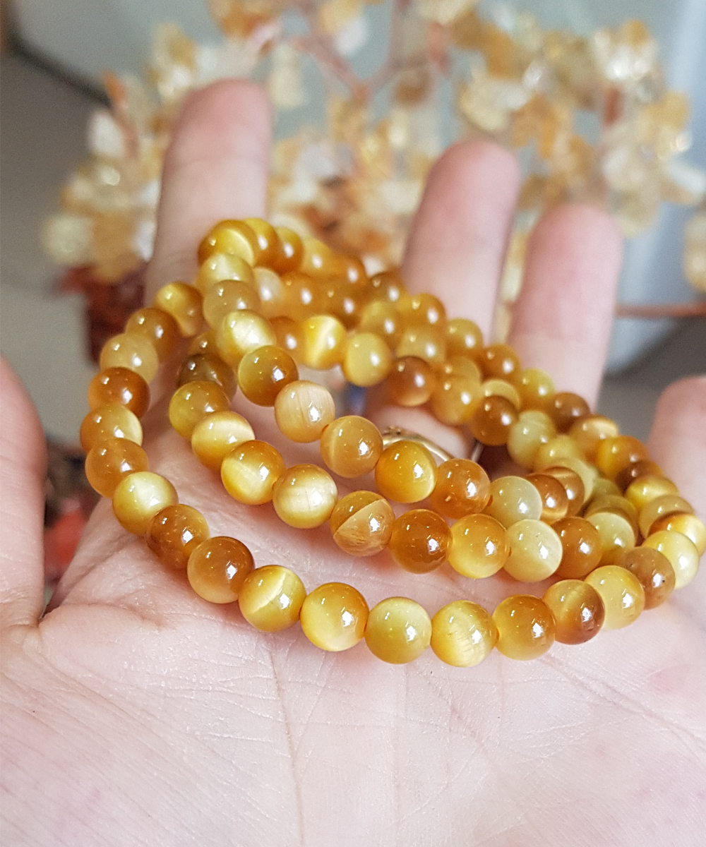Vòng tay đá Mắt Hổ vàng tươi đồng tâm quấn 3 vòng 6ly