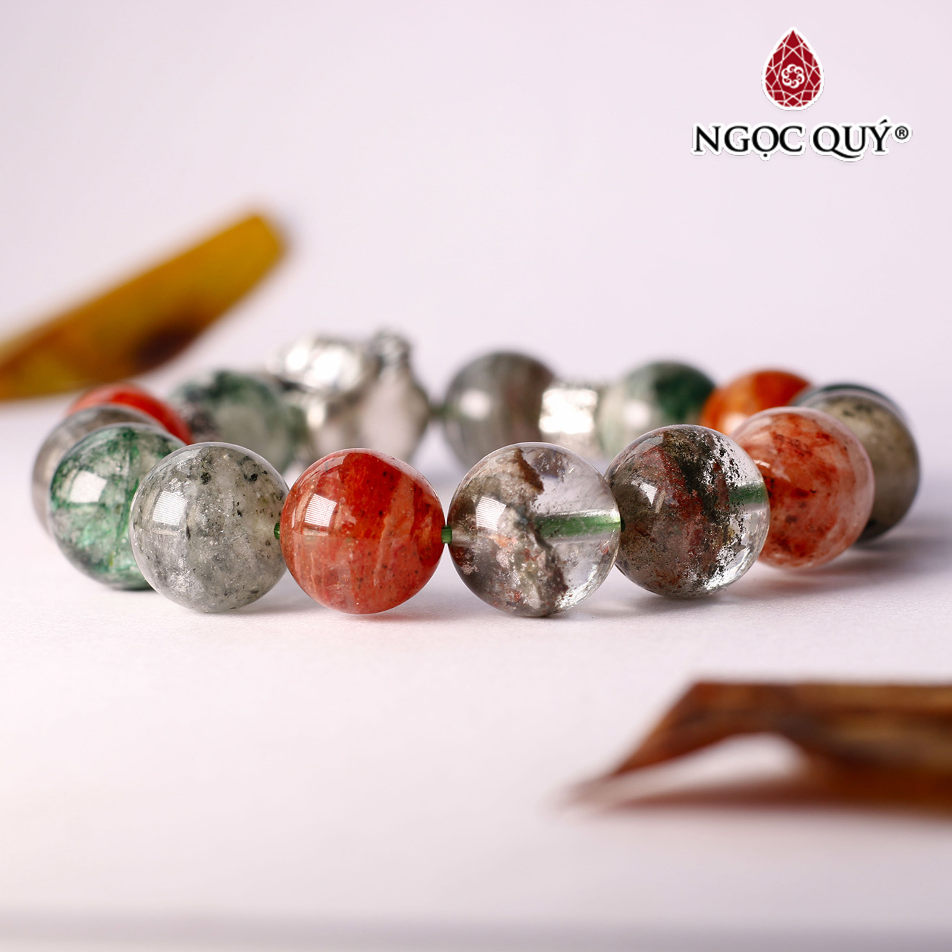 ✨Vòng tay đá ưu linh đa sắc phối đầu hổ hạt 12mm - Ngọc Quý