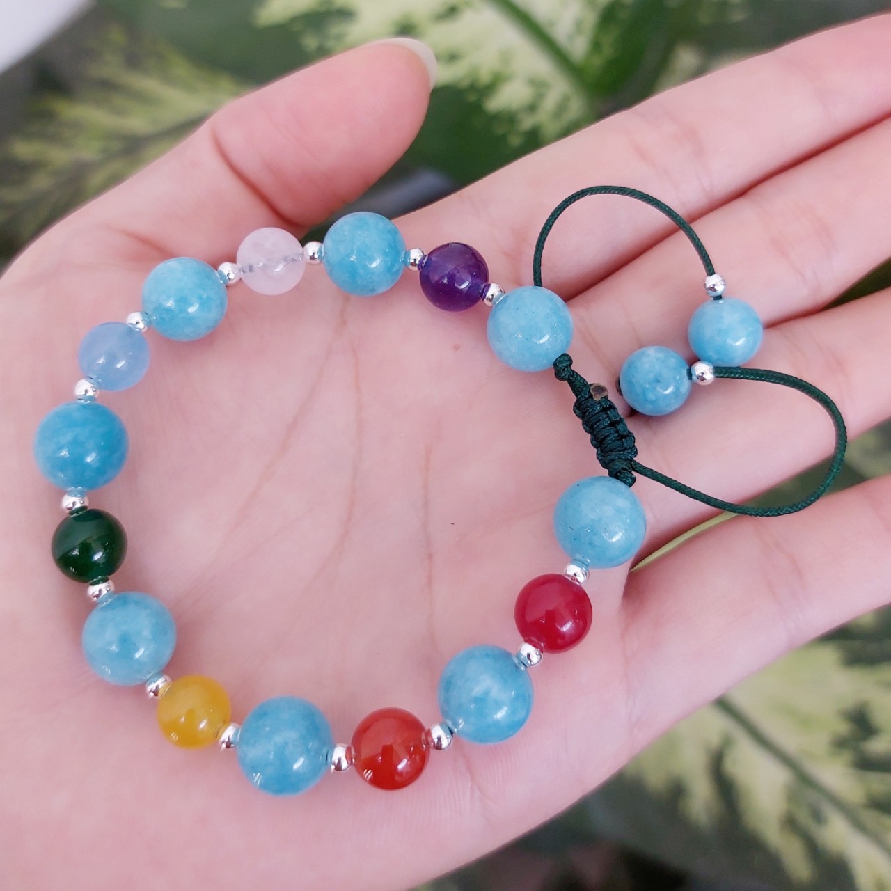 ✨Vòng tay Nữ phong thủy đá Aqua đa sắc kết dây thủ công hút Tài Lộc Duyên