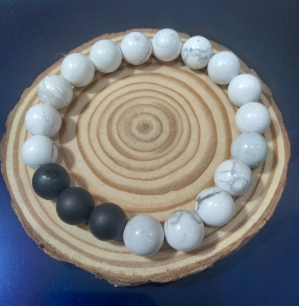 Đá Bạch tùng tên quốc tế là đá Howlite, là sản phẩm tuyệt vời của tạo hóa. Những đường vân màu đen mềm mại nổi bật trên nền đá trắng mịn, Bề mặt đánh bóng của chúng lấp lánh trông như sứ, đá Bạch tùng mang trong mình vẻ đẹp cổ trang với năng lượng tích cực thiên nhiên cực tốt cho người đeo.