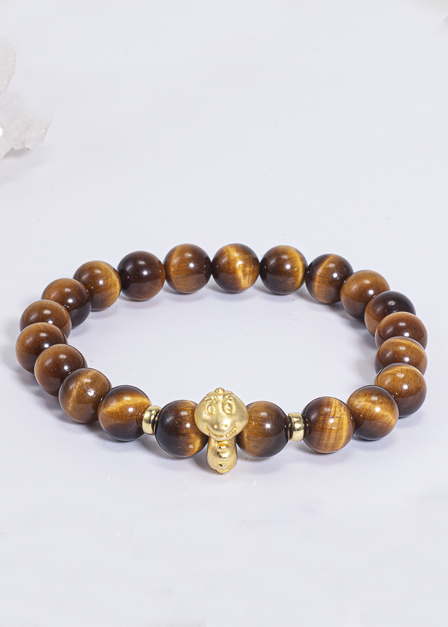 Từ lâu người ta đã biết đá mắt hổ vàng nâu như một viên đá vô cùng tuyệt với tần số rung động cao giúp thu hút những điều tốt đẹp và may mắn trong cuộc sống. Giúp loại bỏ lo âu, căng thẳng, giúp tinh thần luôn tỉnh táo, lạc quan. Vòng Tay Phong Thủy Đá Mắt Hổ Vàng Nâu Phối Charm Tuổi Tỵ Bạc Mạ Vàng 24K (8mm) Mệnh Thổ, Kim được làm từ đá mắt hổ vàng nâu.