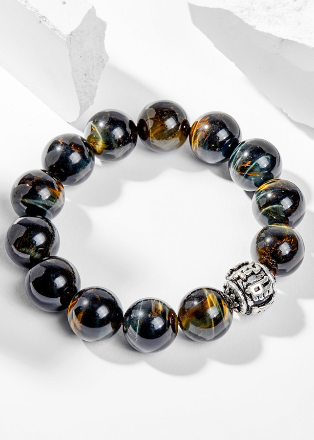 Vòng Tay Phong Thủy Nam Đá Mắt Hổ Xanh Đen Phối Charm Bạc (16mm) Mệnh Thủy, Mộc