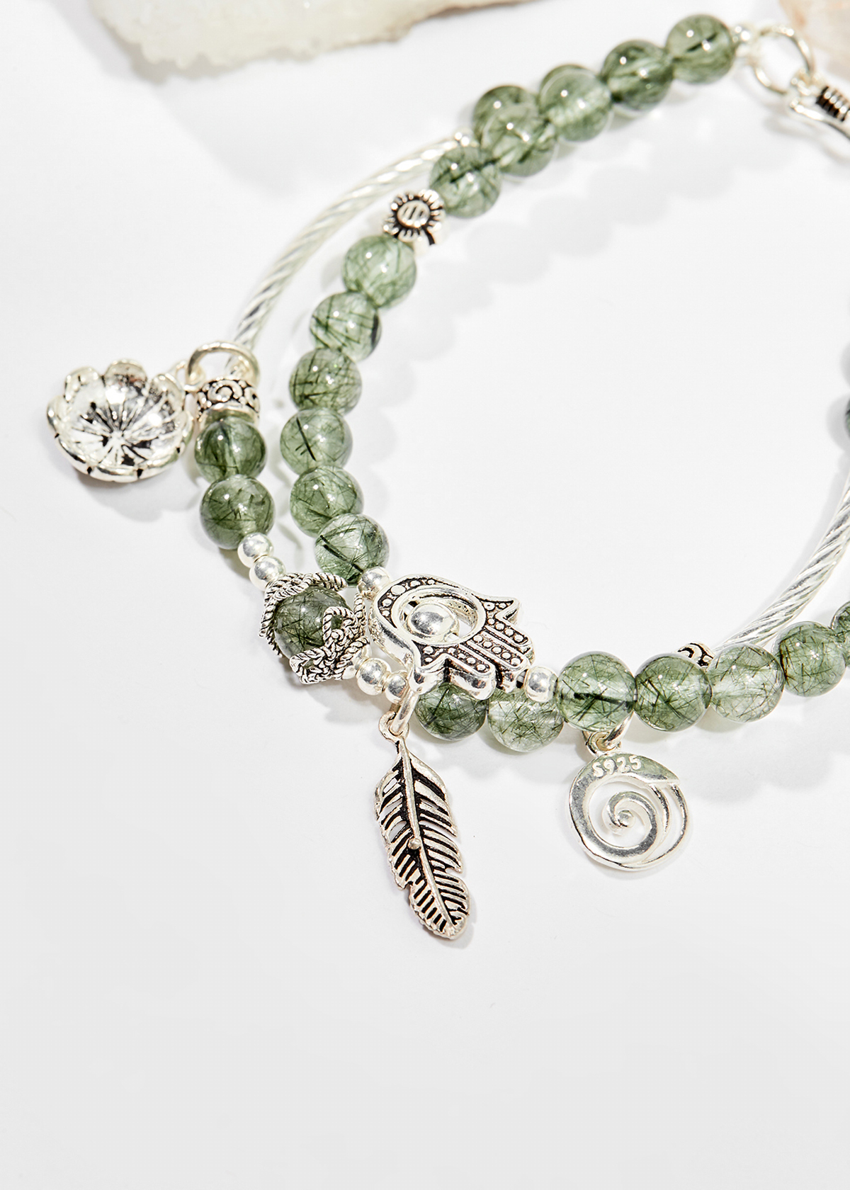 - Vòng Tay Thạch Anh Tóc Xanh 8mm Charm Lá Bạc Ngọc Quý Gemstones VT112 Thạch anh tóc được cho là loại đá quý có tích trữ nhiều năng lượng. Loại năng lượng này giúp
