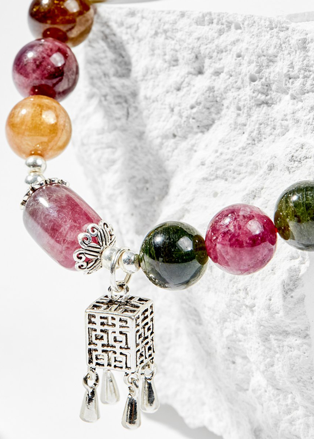 Vòng tay đá tourmaline đa sắc phối charm bạc - Hợp ngũ mệnh | Ngọc Quý Gemstones |