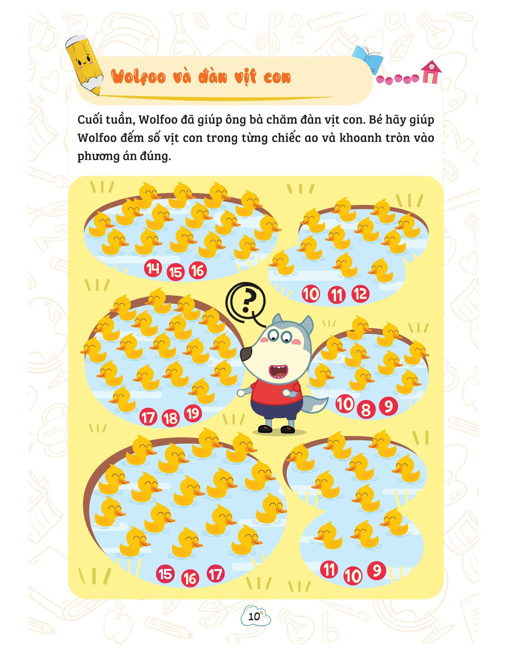 Cuốn sách thuộc trong bộ sách “Wolfoo khám phá toán học vui” gồm 4 cuốn dành trẻ từ 3 đến 6 tuổi. Được thiết kế theo hướng giúp trẻ trải nghiệm, làm quen với những kiến thức toán học cơ bản như: số đếm, phép tính, so sánh và phân biệt các đối tượng, nhận biết hình học cơ bản…