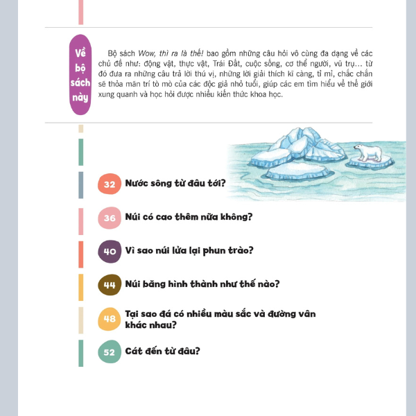 Wow, thì ra là thế! mang đến những lời giải đáp thú vị và bất ngờ như tên gọi của nó. Bộ sách với 9 chủ đề gây tò mò, mỗi tập truyện là rất nhiều câu hỏi, kèm với câu đố vui và giải thích chi tiết khoa học:
