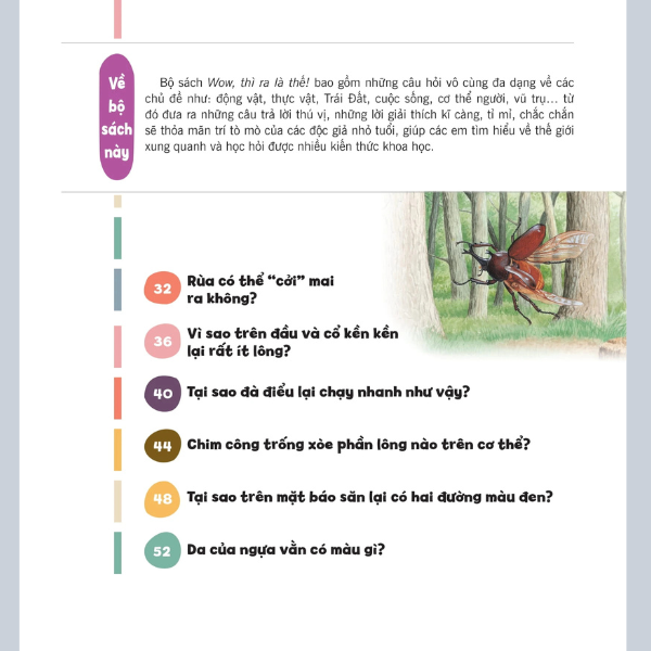 Wow, thì ra là thế! mang đến những lời giải đáp thú vị và bất ngờ như tên gọi của nó. Bộ sách với 9 chủ đề gây tò mò, mỗi tập truyện là rất nhiều câu hỏi, kèm với câu đố vui và giải thích chi tiết khoa học: