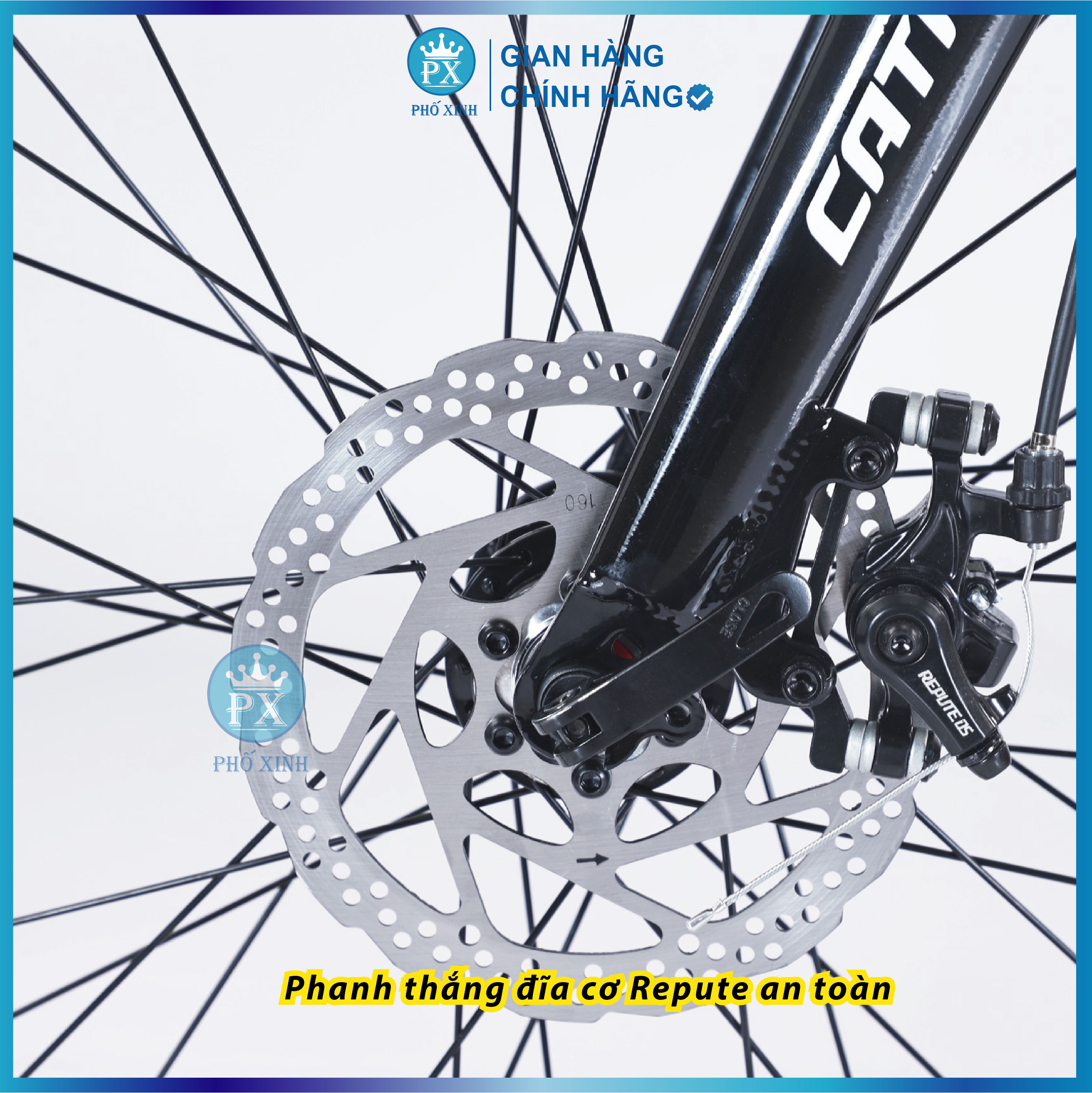 Ghi đông CATANI được uốn công nhẹ, tạo tư tế lái thoải mái nhất. Các chi tiết chữ nổi sử dụng công nghệ laser.Bộ truyền động S H I M A NO tourney lên đến 21 tốc độ, gồm 3 dĩa 7 líp. Cho bạn dễ dàng tăng tốc, trợ thủ đắc lực đồng hành cùng bạn. Đùi dĩa CATANI chất liệu thép hợp kim chắc chắn.Hệ thống thắng đĩa cơ, đảm bảo an toàn trên tất cả mọi nẻo đường.