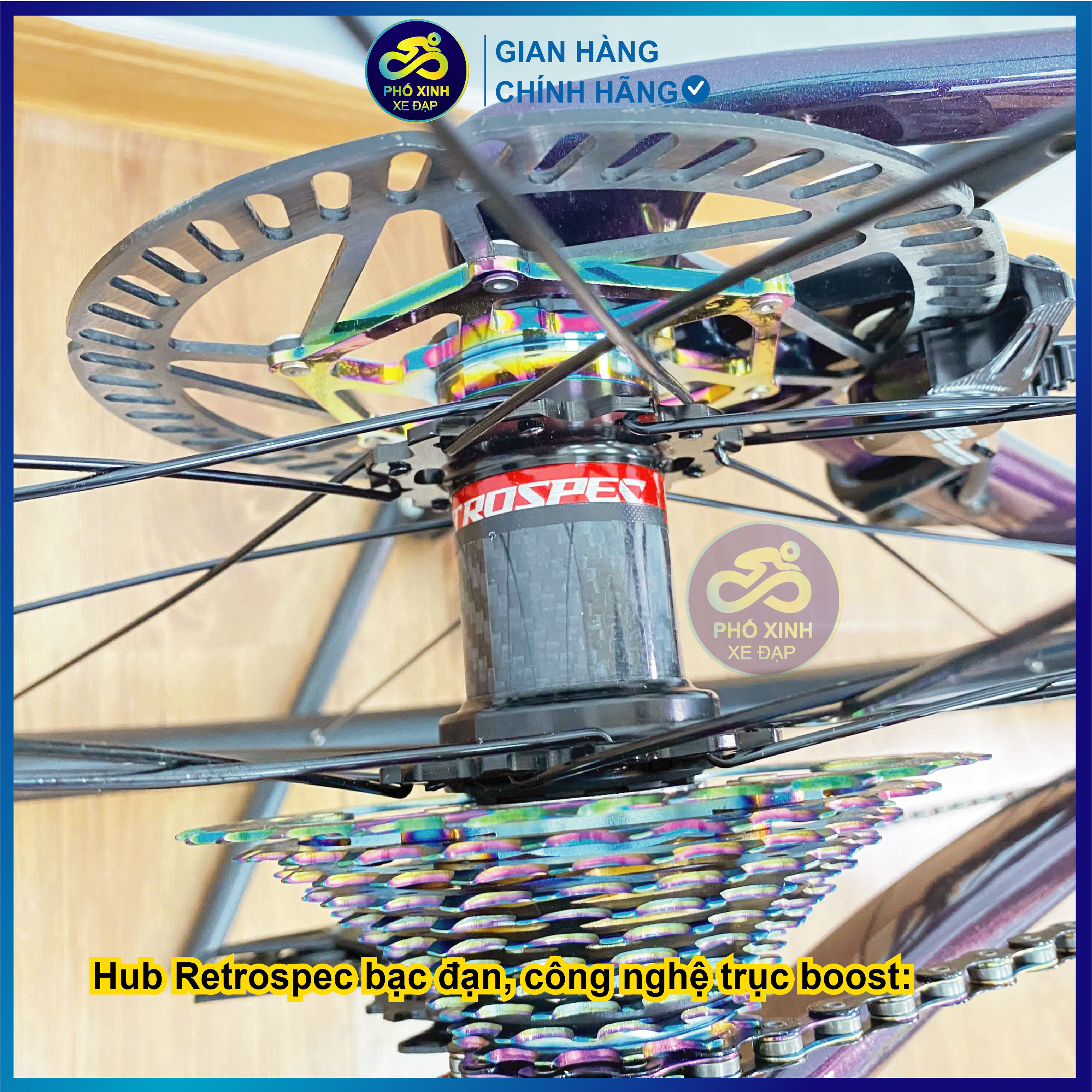 Hub R e t r o s p e c bạc đạn, công nghệ trục boost: độ cứng vững cao, tăng độ ổn định khi chạy tốc độ lớn.
