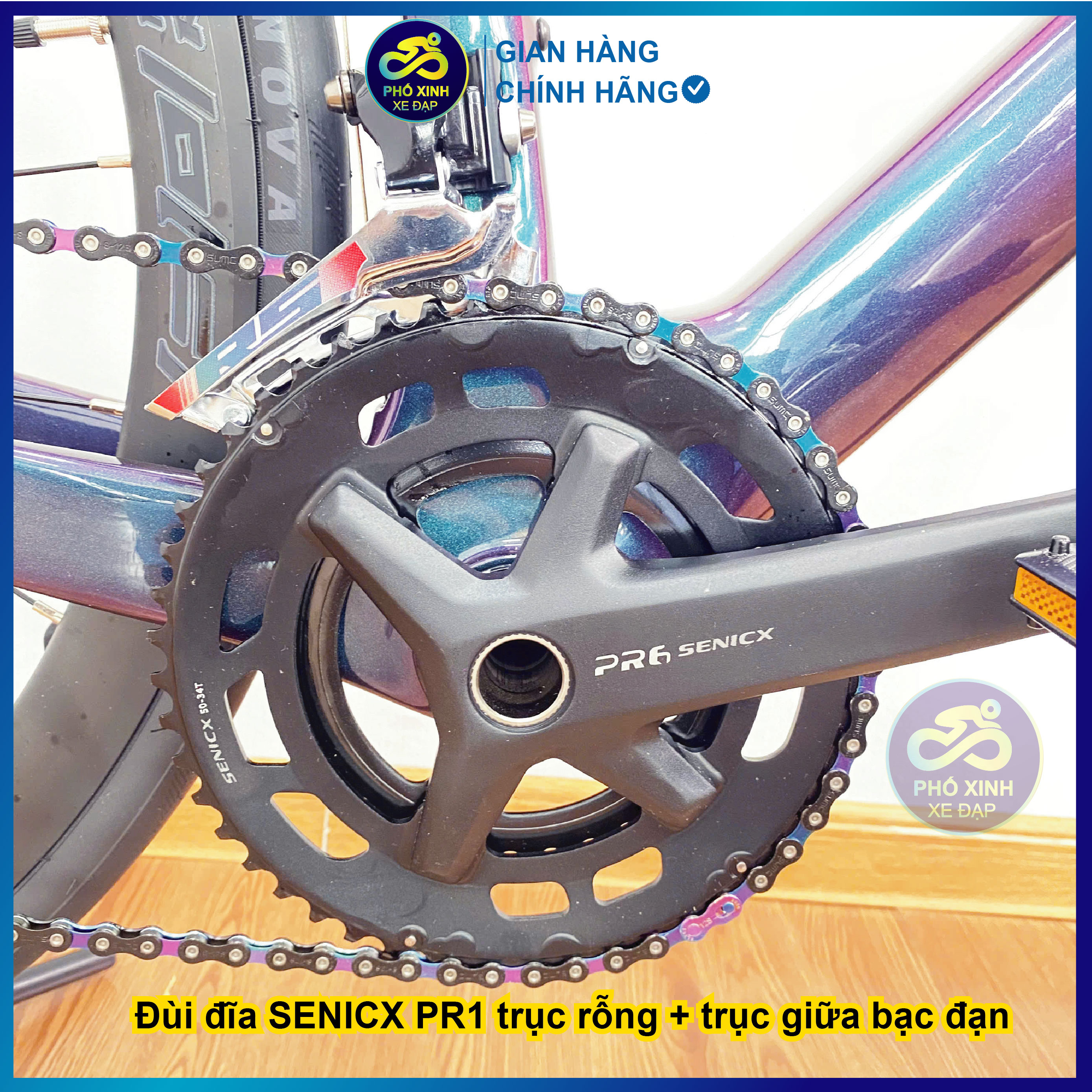 Đùi đĩa S E N I C X P R 1 trục rỗng+ trục giữa bạc đạn: truyền lực tối ưu, giảm hao hụt sức mạnh.