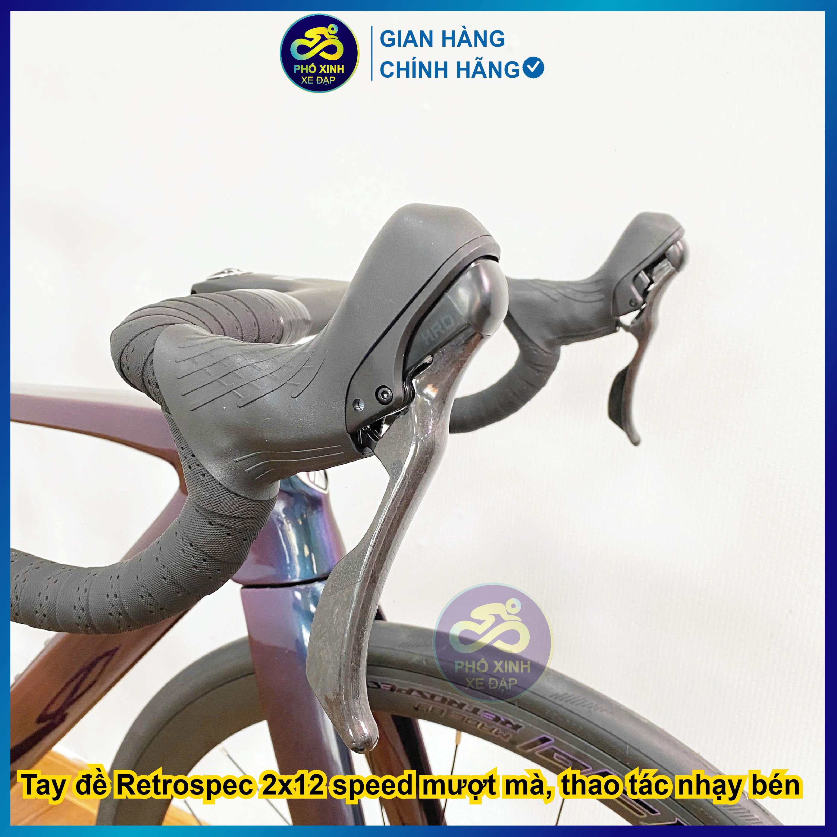 Tay đề R e t r o s p e c 2x12 s p e e d mượt mà, thao tác nhạy bén.