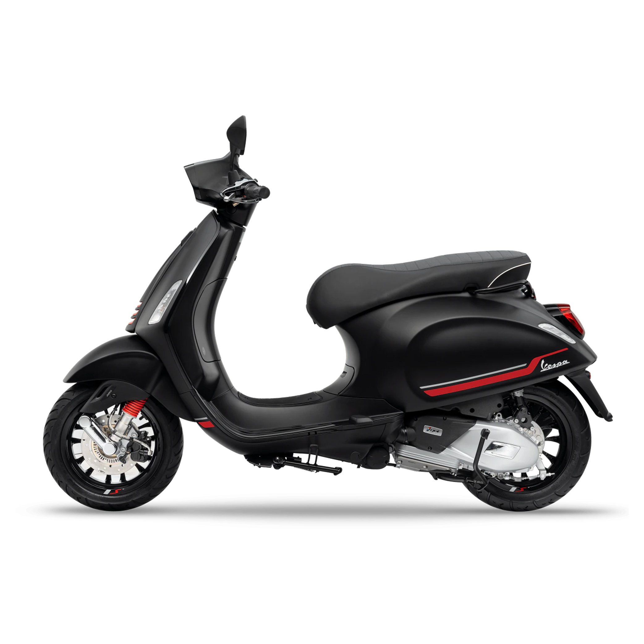 Sprint S 150 Thể hiện tối đa các tính năng đúng với tinh thần thể thao, Vespa Sprint S 150cc sinh ra cho những ai yêu tốc độ, không ngại bứt phá để thỏa mãn đam mê nhưng vẫn tiết kiệm nhiên liệu tiêu thụ & thân thiện môi trường. Sức hút vượt trội Dòng sản phẩm Vespa Sprint S 125 và 150 mới nhất mang những nét hoàn thiện đẳng cấp. Trung tâm thiết kế Vespa Ý đã mang đến sự kết hợp màu sắc thậm chí tinh vi: các chi tiết hoàn thiện màu đen mới sẽ mang đến nét chấm phá cuối cùng cho dải màu sắc mới. Tinh thần năng động của Vespa Sprint S được làm nổi bật bởi các chi tiết màu đỏ đặc trưng của phiên bản S. Khát khao mạnh mẽ Đề cao tính cách dũng cảm, táo bạo và nhanh nhẹn của người cầm lái, Vespa Sprint S luôn khao khát trở thành người tiên phong. Vespa Sprint S là người bạn đồng hành đáng tin cậy trong hành trình vượt qua giới hạn bản thân, chinh phục những thử thách mới và hãy là chính mình Với một góc nhìn táo bạo Vespa Sprint S 150 tự hào là dòng xe làm bằng thép nguyên khối nhỏ gọn, nhẹ và thuận tiện. Thiết kế với đường nét trẻ trung được tạo điểm nhấn bởi đèn pha hình chữ nhật không cầu kỳ, sắc sảo và được hoàn thiện bằng bộ mâm lớn 12 inch với vành hợp kim nhôm đẹp mắt.