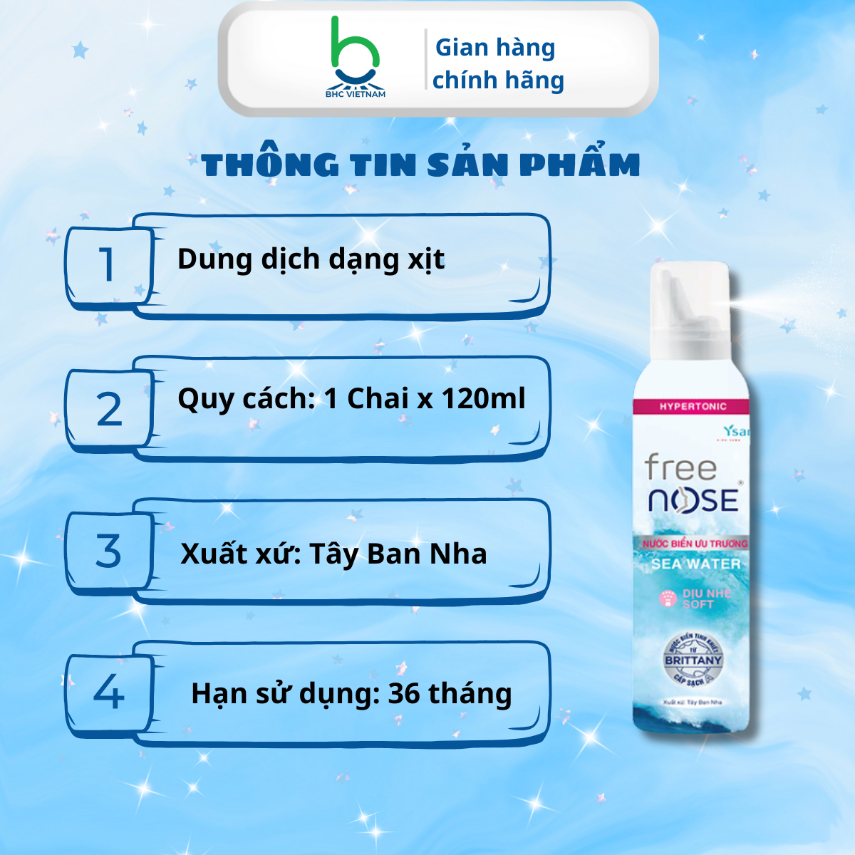 Xịt Mũi Free Nose Ưu Trương Hỗ Trợ Giảm Nghẹt Mũi, Chảy Nước Mũi Dành cho trẻ từ 3 tháng Tên sản phẩm: Free Nose Ưu Trương Dạng bào chế: Dung dịch xịt mũi Quy cách đóng gói: Chai 120 ml Xuất xứ: Tây Ban Nha Hạn sử dụng: 36 tháng Tiêu chuẩn: TCCS, GMP Công Dụng Nổi Bật: Hỗ trợ làm sạch và thông thoáng đường mũi, giúp giảm nghẹt mũi, chảy nước mũi do viêm nhiễm. Hỗ trợ làm dịu niêm mạc mũi, giảm viêm xoang. Hạn chế tình trạng ngáy do khô mũi. Hỗ trợ điều trị nhiễm khuẩn niêm mạc mũi họng và nhiễm khuẩn xoang cạnh mũi. Thành Phần Chính: Nước biển ưu trương (Natri clorid 2,2%) giúp hút bớt dịch nhầy, giảm sưng niêm mạc, giúp mũi thông thoáng hơn. Đối Tượng Sử Dụng: Trẻ em từ 3 tháng tuổi và người lớn bị nghẹt mũi, chảy nước mũi, nhiễm khuẩn niêm mạc mũi họng hoặc viêm xoang. Người gặp tình trạng ngáy do khô niêm mạc mũi. Hướng Dẫn Sử Dụng: Xịt vào mỗi bên mũi theo hướng dẫn sử dụng. Có thể sử dụng hàng ngày để hỗ trợ vệ sinh mũi và giảm các triệu chứng nghẹt mũi. Lưu Ý Khi Sử Dụng: ️ Để xa tầm tay trẻ em. ️ Sản phẩm này không phải là thuốc và không có tác dụng thay thế thuốc chữa bệnh. Tại Sao Nên Chọn Free Nose Ưu Trương? Công thức ưu trương giúp giảm nghẹt mũi hiệu quả hơn so với nước biển thông thường. An toàn cho trẻ nhỏ từ 3 tháng tuổi, không chứa chất bảo quản hay hóa chất độc hại. Dễ dàng sử dụng hàng ngày để duy trì sức khỏe mũi họng cho cả gia đình. MUA NGAY Free Nose Ưu Trương – Giải Pháp Hỗ Trợ Giảm Nghẹt Mũi An Toàn Và Hiệu Quả!