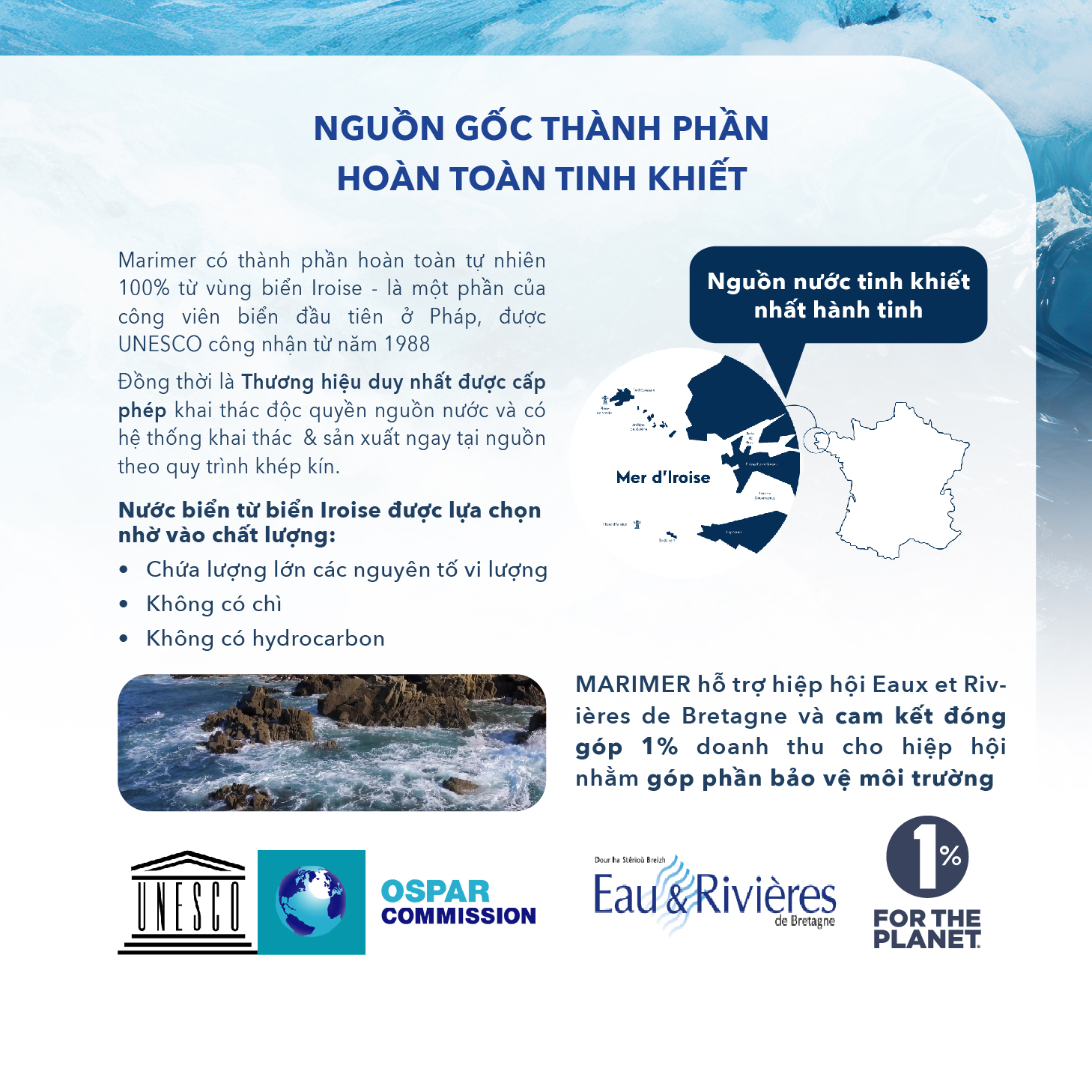 Dung dịch xịt mũi Marimer là dung dịch nước biển tự nhiên 100%, giàu muối khoáng và các nguyên tố vi lượng. Có thể sử dụng hàng ngày nhờ nồng độ sinh lý (đẳng
