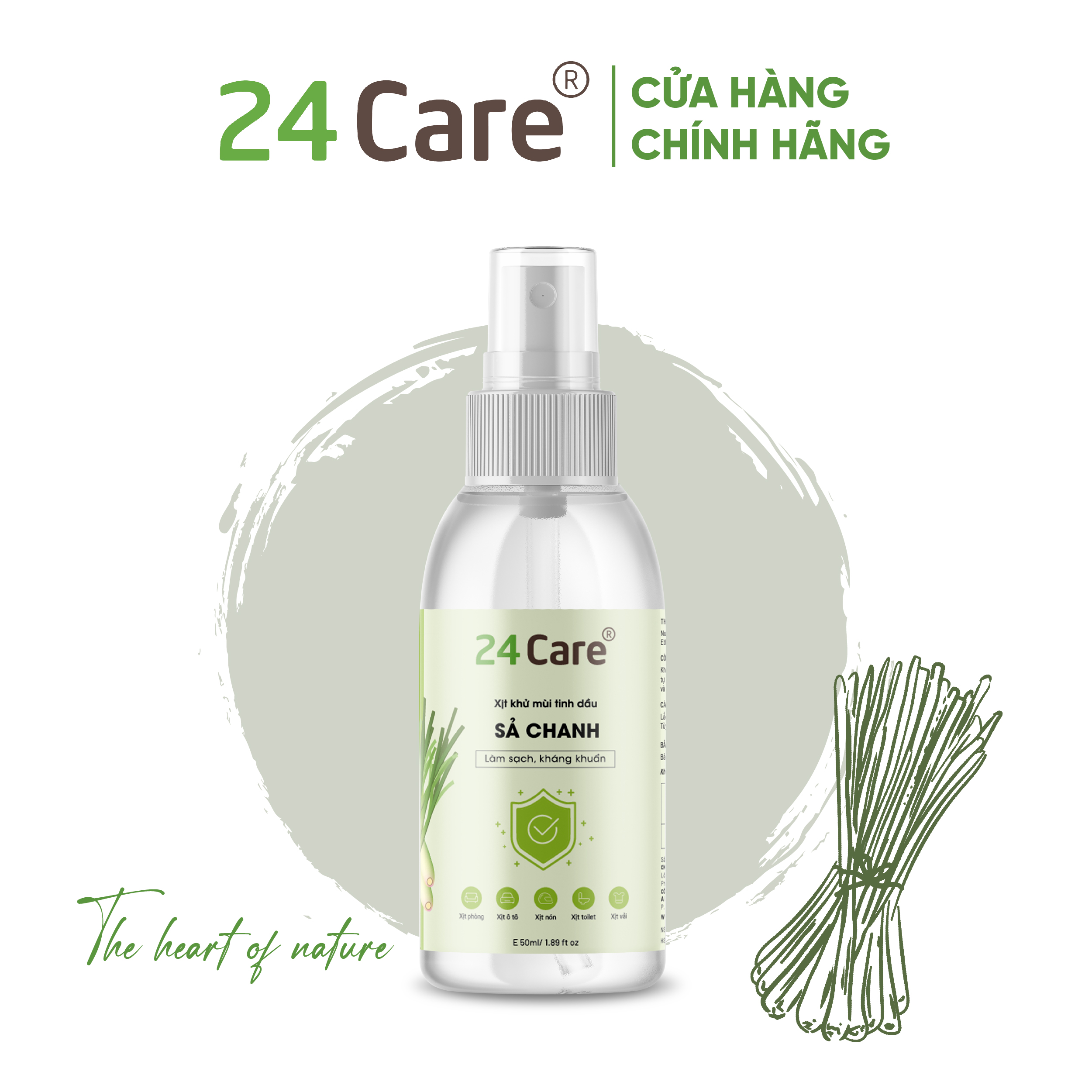 - Sả chanh: Với thành phần đặc biệt, tinh dầu sả chanh có khả năng kháng khuẩn, kháng nấm, làm sạch hiệu quả, giúp khử mùi và luôn thơm tho. Mùi hôi, mùi khó chịu có thể khiến mọi người ngượng ngùng, tạo ra khoảng cách giữa các mối quan hệ. Không những vậy, mùi khó chịu ấy, bắt nguồn từ các vi khuẩn gây mùi, vi khuẩn gây bệnh có hại cho sức khỏe. Việc ngại đi vệ sinh ở những nơi công cộng, nhịn uống nước dẫn đến việc thải độc trong cơ thể trở nên khó khăn, gây nên các bệnh nguy hiểm. Với mùi hương dịu nhẹ cộng thêm tính khuếch tán nhanh và mạnh mẽ, tinh dầu Sả Chanh 24Care sẽ giúp bạn khử mùi hôi nhanh chóng, hơn thế nữa còn tiêu diệt và ngăn ngừa sự phát triển của nấm mốc, đồng thời còn làm sạch bầu không khí trong gia đình của bạn, giúp tinh thần được thư giãn và cân bằng hơn. Ngăn chặn mọi loại mùi khiến bạn ngượng ngùng, khó chịu, diệt khuẩn, tiệt trùng chính là điều mà 24Care tích hợp đủ để phục vụ nhu cầu thiết yếu của bạn. Với mùi hương nhẹ nhàng, tươi mới, ngọt dịu và lắng đọng của Sả Chanh có khả năng tiêu diệt mọi vi khuẩn và phân tử gây mùi, cùng hương thơm như buổi sáng sớm, xốc lại một tinh thần phấn chấn, tăng hiệu suất làm việc, giảm cảm giác buồn nôn chống mặt khi bị sốc mùi. Công dụng: Có tác dụng tuyệt vời trong xua đuổi muỗi, mùi hương dễ chịu, giảm stress đem đến không gian thoải mái, giúp bạn sinh hoạt, học tập và làm việc hiệu quả. An toàn cho sức khỏe. Bảo quản: Bảo quản nơi khô ráo, tránh ánh nắng mặt trời. Hướng dẫn sử dụng: Dùng Xịt phòng kháng khuẩn 24Care để xịt vào mọi không gian trong nhà bạn để khử mùi và làm sạch bạn nhé! Xịt phòng kháng khuẩn 24Care cũng phù hợp cho không gian nhà bếp, nhà vệ sinh và xe ô tô.