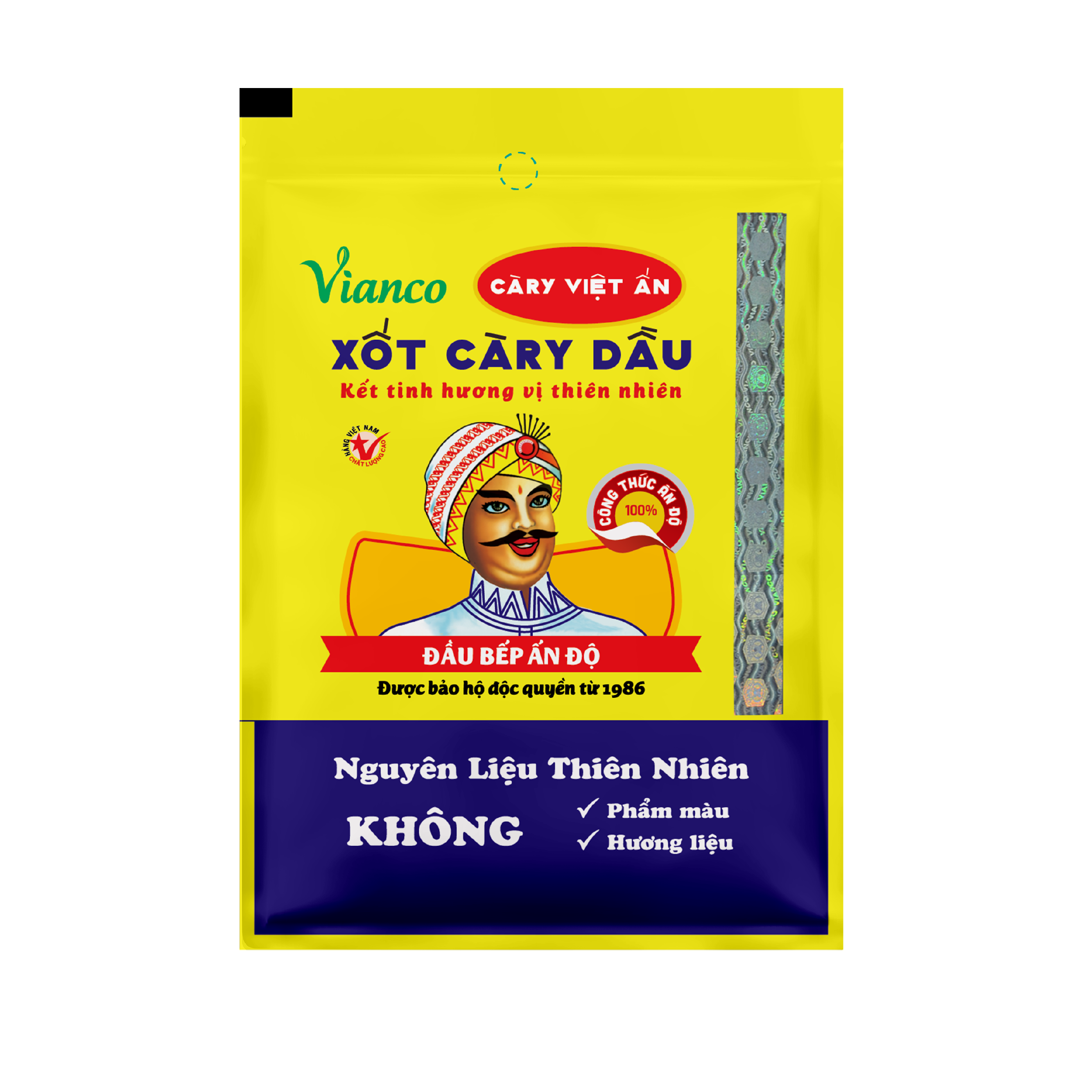 Xốt Cà Ry Dầu Việt Ấn- Hiệu Ông Đầu bếp Ấn Độ là gia vị cà ry được khởi nguồn từ năm 1958. Với hình ảnh Ông Đầu Bếp Ấn Độ có màu (không có phiên bản trắng đen), được bảo hộ thương hiệu độc quyền của Công Ty Gia Vị Việt Ấn.