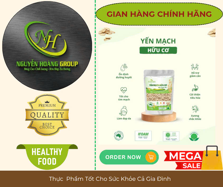 GIỚI THIỆU Yến mạch ăn kiêng GUfoods là loại ngũ cốc với hàm lượng chất xơ và giá trị dinh dưỡng vượt trội, bổ sung lý tưởng cho thực đơn ăn kiêng thường ngày. Sản phẩm đặc biệt phù hợp với người tập gym, tập thể thao, eat clean, hỗ trợ giảm cân và giàu lợi ích sức khoẻ. ĐẶC ĐIỂM NỔI BẬT ✓ Giàu chất xơ và dinh dưỡng tốt, nhiều lợi ích sức khoẻ từ yến mạch ✓ Đặc biệt phù hợp cho người tập gym - thể thao, ăn kiêng, thực dưỡng, eat clean ✓ Nguyên liệu sạch, nhập khẩu Úc ✓ Không phụ gia, không chất bảo quản THÀNH PHẦN 100% Yến mạch nguyên hạt cán mỏng. GIÁ TRỊ DINH DƯỠNG Yến mạch cung cấp nhiều chất xơ, protein, vitamin, các hợp chất chống oxy hoá và các khoáng chất có lợi cho sức khỏe. LỢI ÍCH SỨC KHỎE 1. Hỗ trợ quá trình ăn kiêng - Chất xơ trong yến mạch giúp tiêu hóa lâu hơn và duy trì cảm giác no trong một khoảng thời gian dài, hạn chế cảm giác thèm ăn. 2) Tốt cho bệnh nhân tiểu đường type 2 - Bệnh tiểu đường type 2 được đặc trưng bởi sự điều chỉnh bất thường của lượng đường trong máu, thường là do giảm độ nhạy hormone insulin. Beta glucan trong yến mạch có tác dụng giúp kiểm soát lượng đường trong máu bằng cách điều chỉnh đáp ứng glucose và insulin sau bữa ăn 3) Tốt cho hệ tiêu hoá - Lượng chất xơ dồi dào có trong yến mạch giúp điều chỉnh chức năng ruột, giảm các triệu chứng táo bón và viêm đại tràng. 4) Tốt cho tim mạch - Các nghiên cứu đã chứng minh rằng yến mạch có thể làm giảm mức cholesterol, qua đó giúp hỗ trợ tích cực cho sức khoẻ tim mạch. HƯỚNG DẪN SỬ DỤNG Làm chín và ăn kèm sữa chua / sữa tươi; nấu thành cháo / súp; hoặc dùng làm nguyên liệu chế biến granola, ngũ cốc, các loại bánh. HƯỚNG DẪN BẢO QUẢN Bảo quản nơi khô mát, tránh ánh nắng trực tiếp. KHỐI LƯỢNG TỊNH